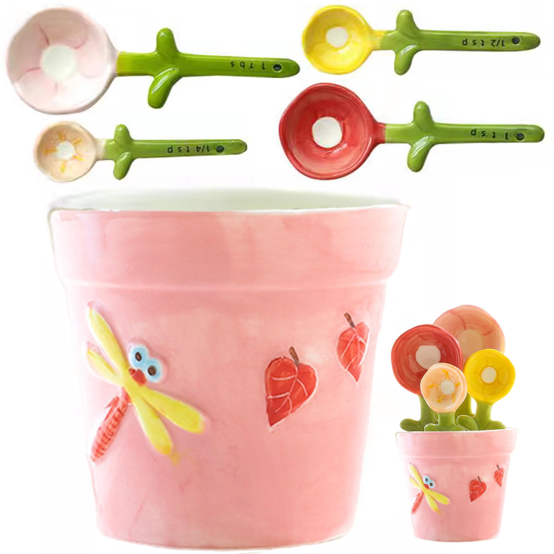 - Space-Saving Storage: The flower pot not only serves as a decorative item but also provides an organized space for storing your measuring spoons and cups, keeping your kitchen tidy.