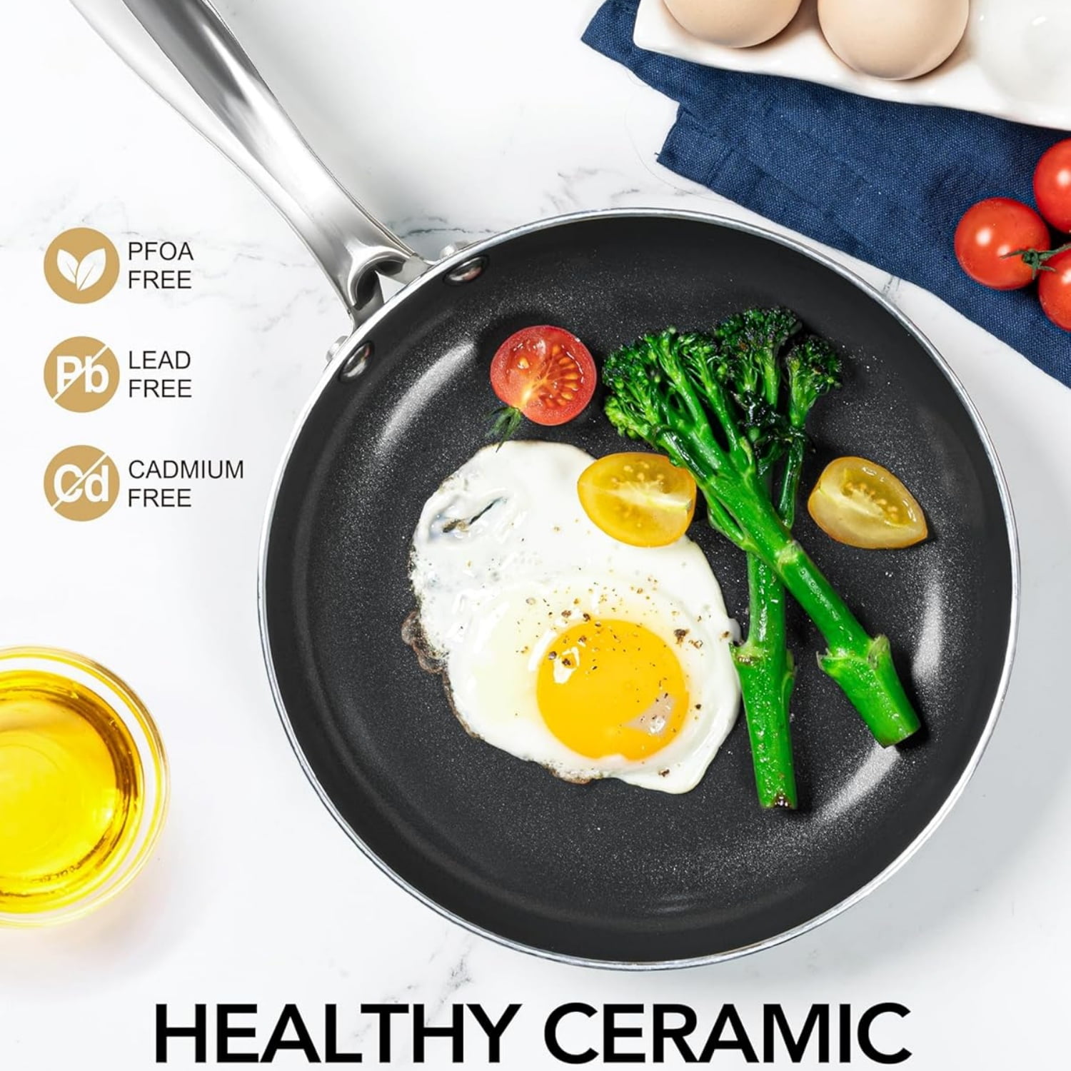 - Built to Last – Premium ceramic coating is scratch-resistant and withstands the rigors of daily cooking. Say goodbye to peeling and chipping, and hello to our ceramic frying pan that lasts.