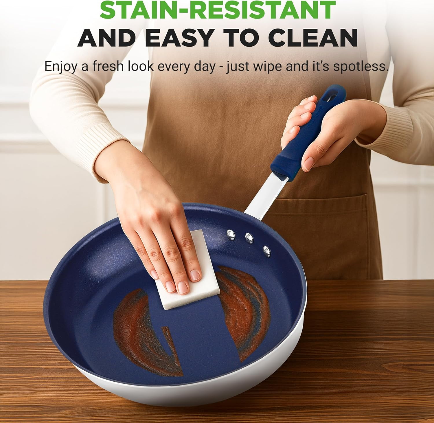 - HEALTHY CERAMIC COATING: Features a premium non-stick ceramic surface that ensures even heat distribution, prevents food sticking, and eliminates the need for excessive oils during cooking.