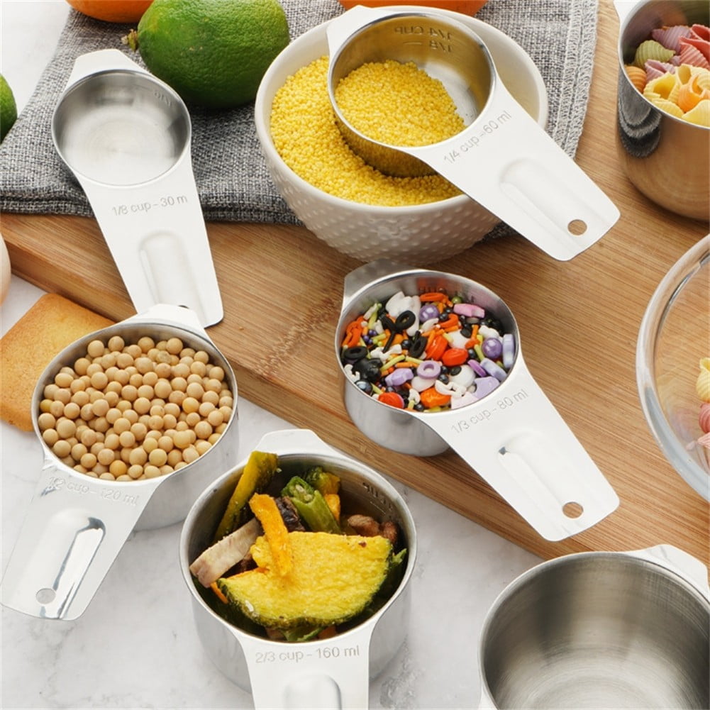 - *Clear Measurement Markings: Each cup and spoon features clearly etched measurement markings in both milliliters and cups, you can easily see the exact amount you’re measuring for precision in your recipes.