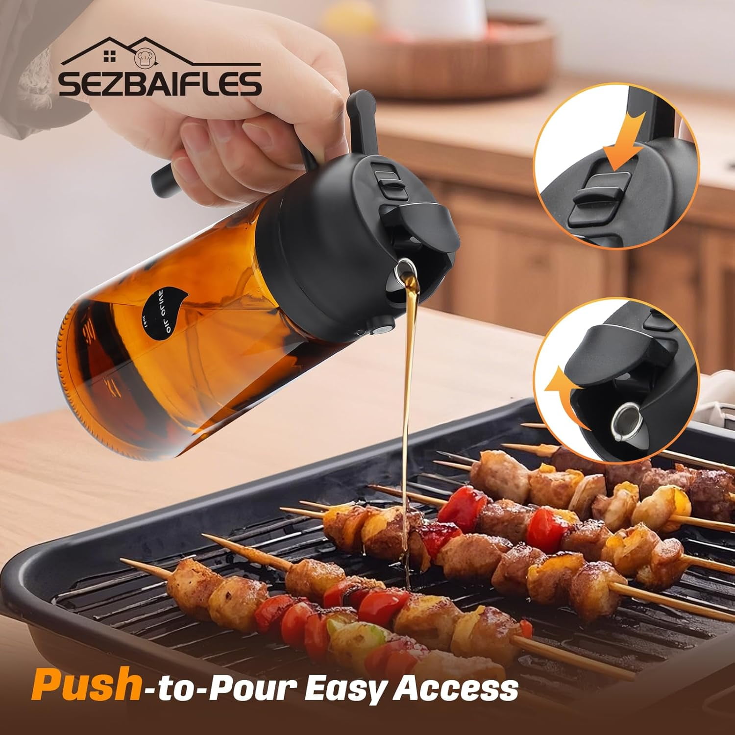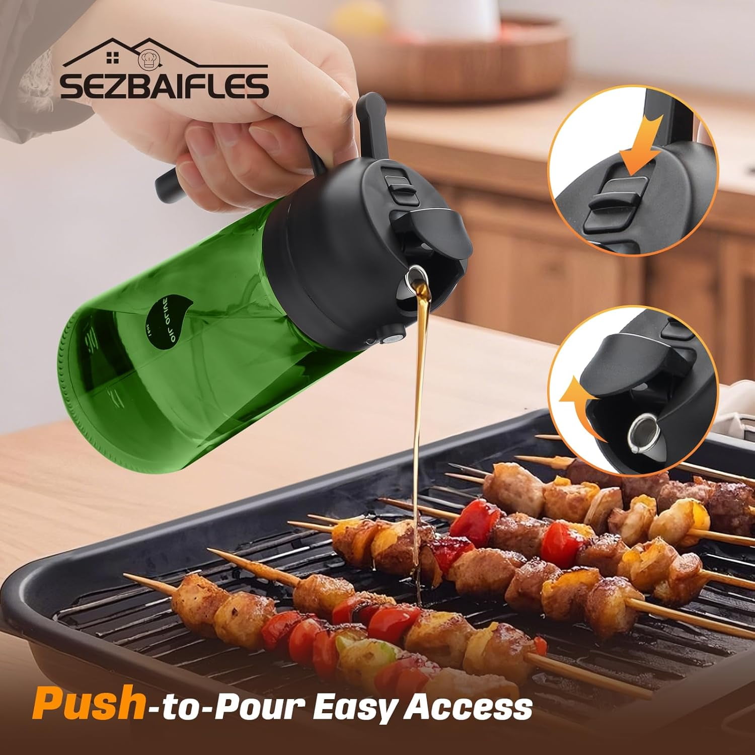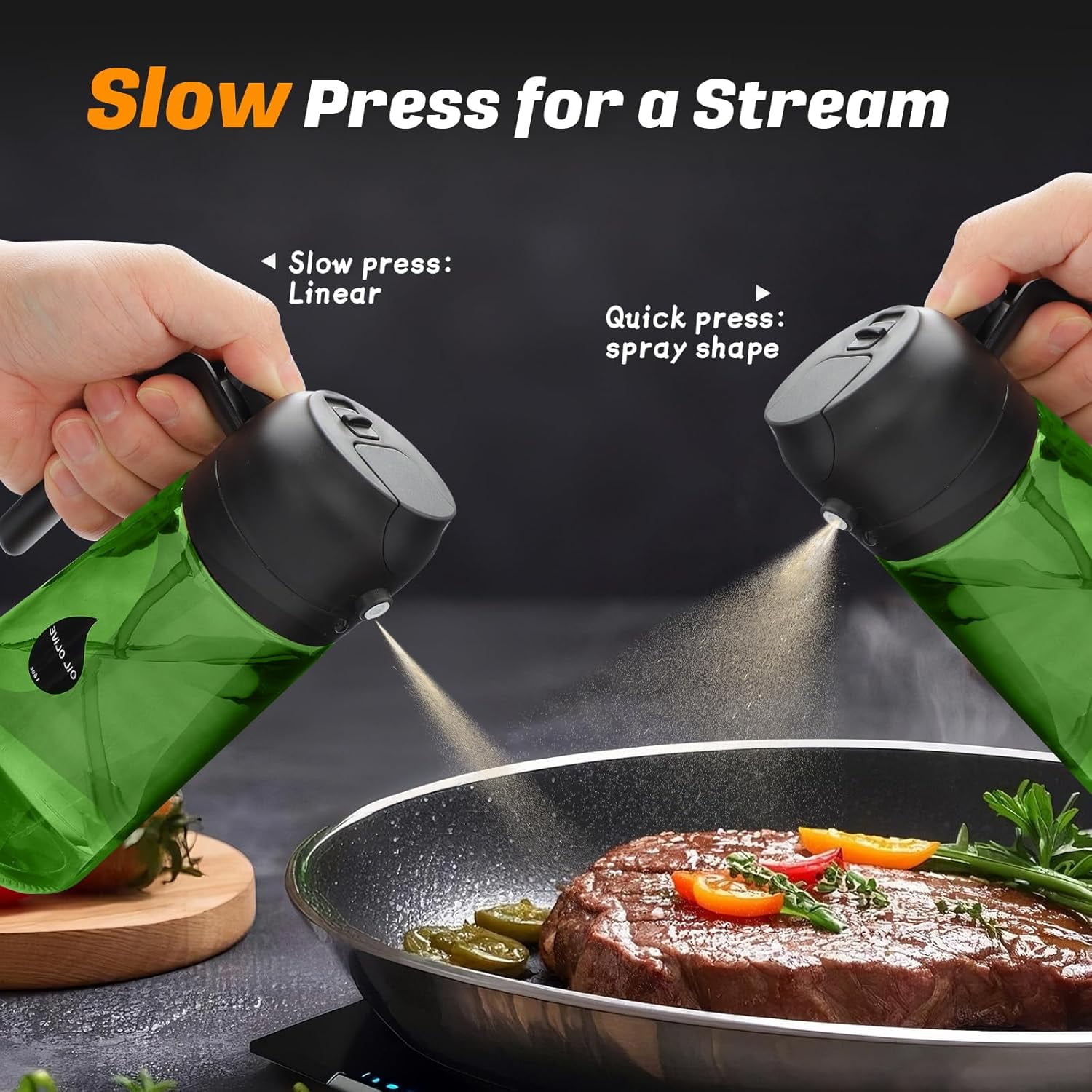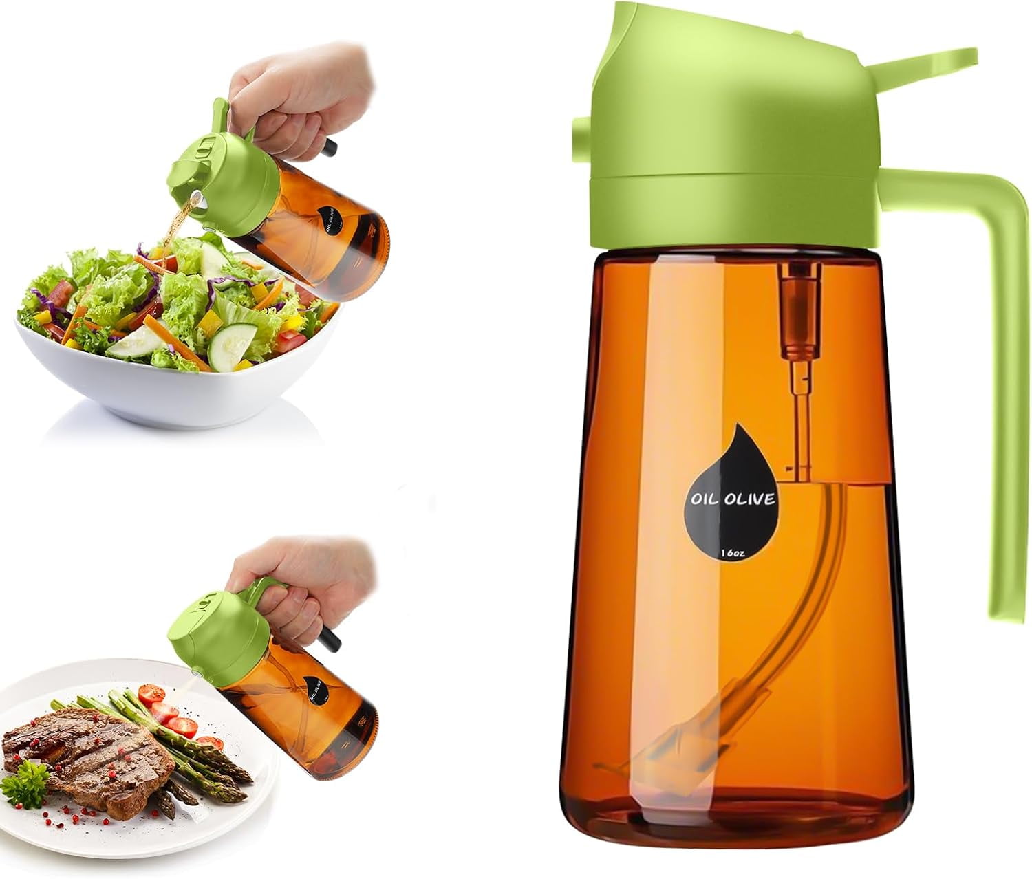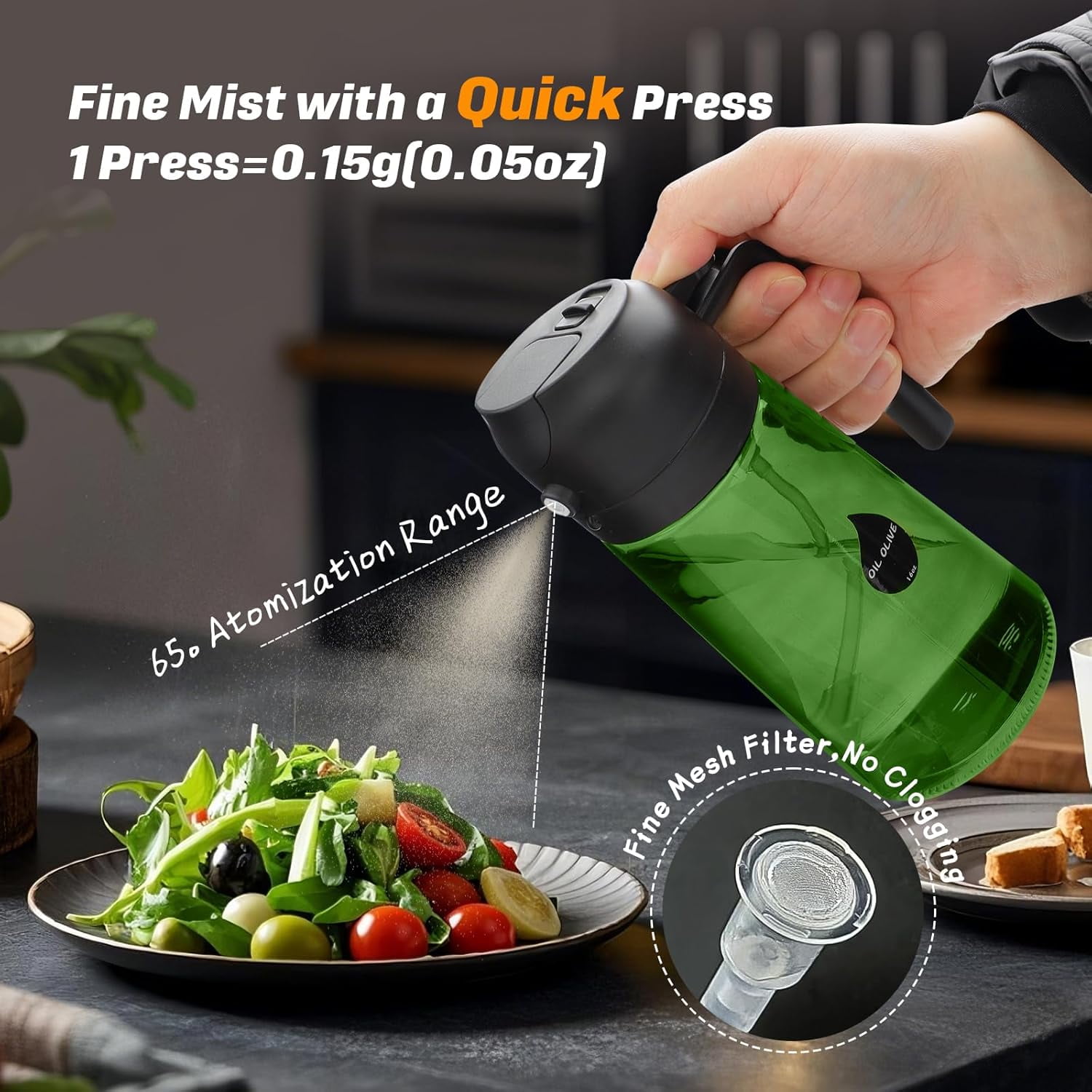 2 In 1 Oil Dispenser and Oil Sprayer: Oil Mister 65° Uniform Spray (0.2g/Quick Press), 0.4-Inch Oil Pouring Port, Precise Control of Oil Consumption, Leak-Proof Sealing Design, And Innovative Nozzle That is Not Easy to Clog Ensure Smooth Use. Oil Dispenser Bottle Spray and Pour One Device has Two Uses, Making it Easy to Control Daily Oil Consumption and Start a New Healthy Kitchen Experience