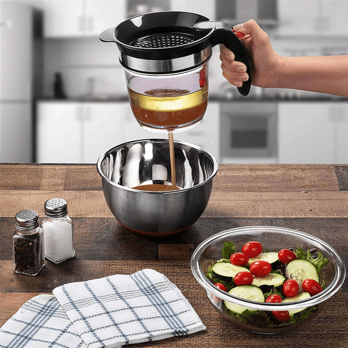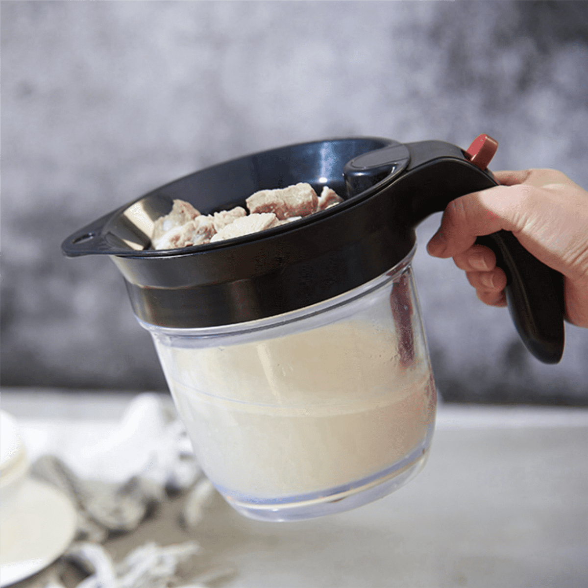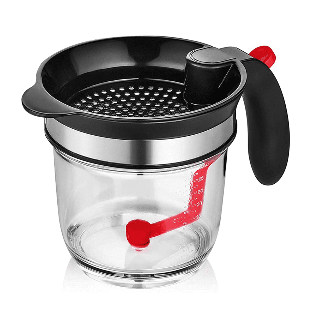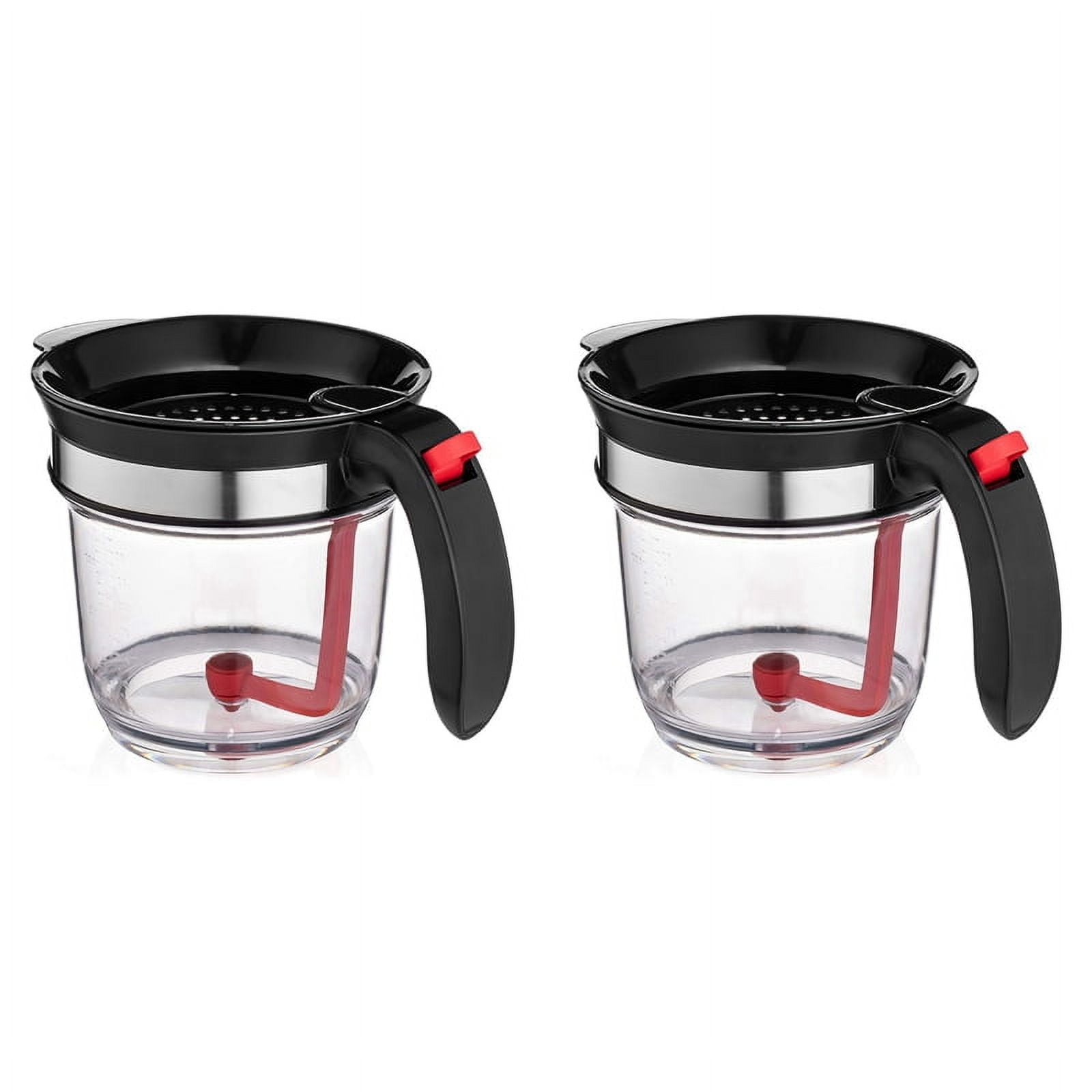 2X 1000ML Oil Separator Measuring Cup and Strainer with Bottom Release for Sauces & Other Liquids with Oil Grease