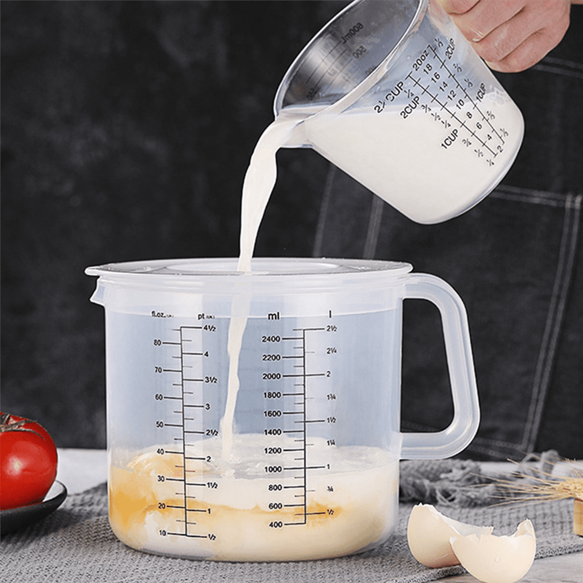 2X Plastic Ounce Measuring Cups and Mixing Pitcher for Baking with Lid Liquid Measuring /Jar in Ml with Splash Guard