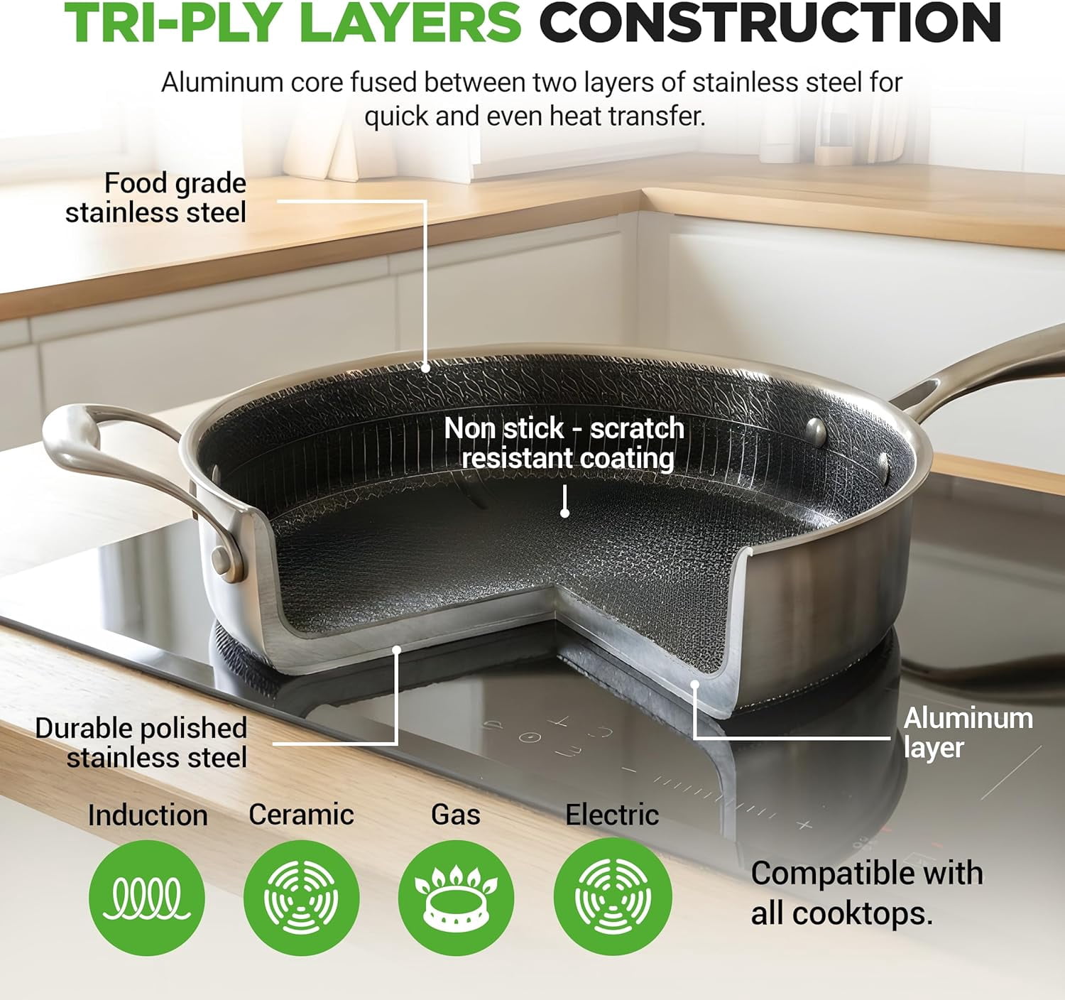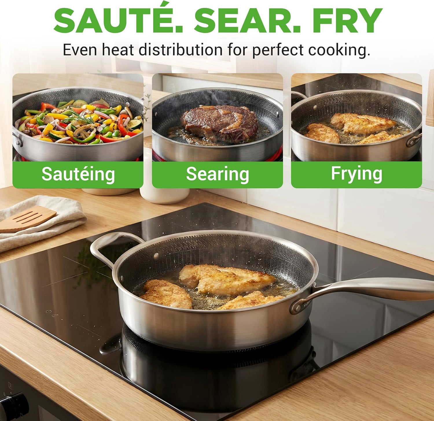 - EVEN HEAT DISTRIBUTION: Constructed with a triply composite structure featuring an aluminum core sandwiched between stainless steel layers for rapid, uniform heat transfer, eliminating hot spots for perfectly cooked meals every time.