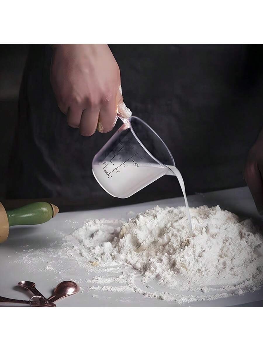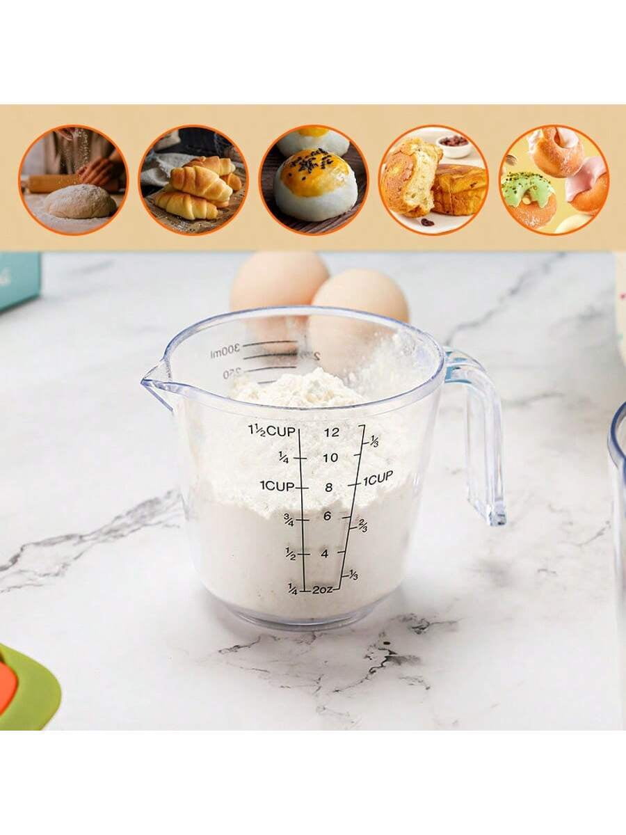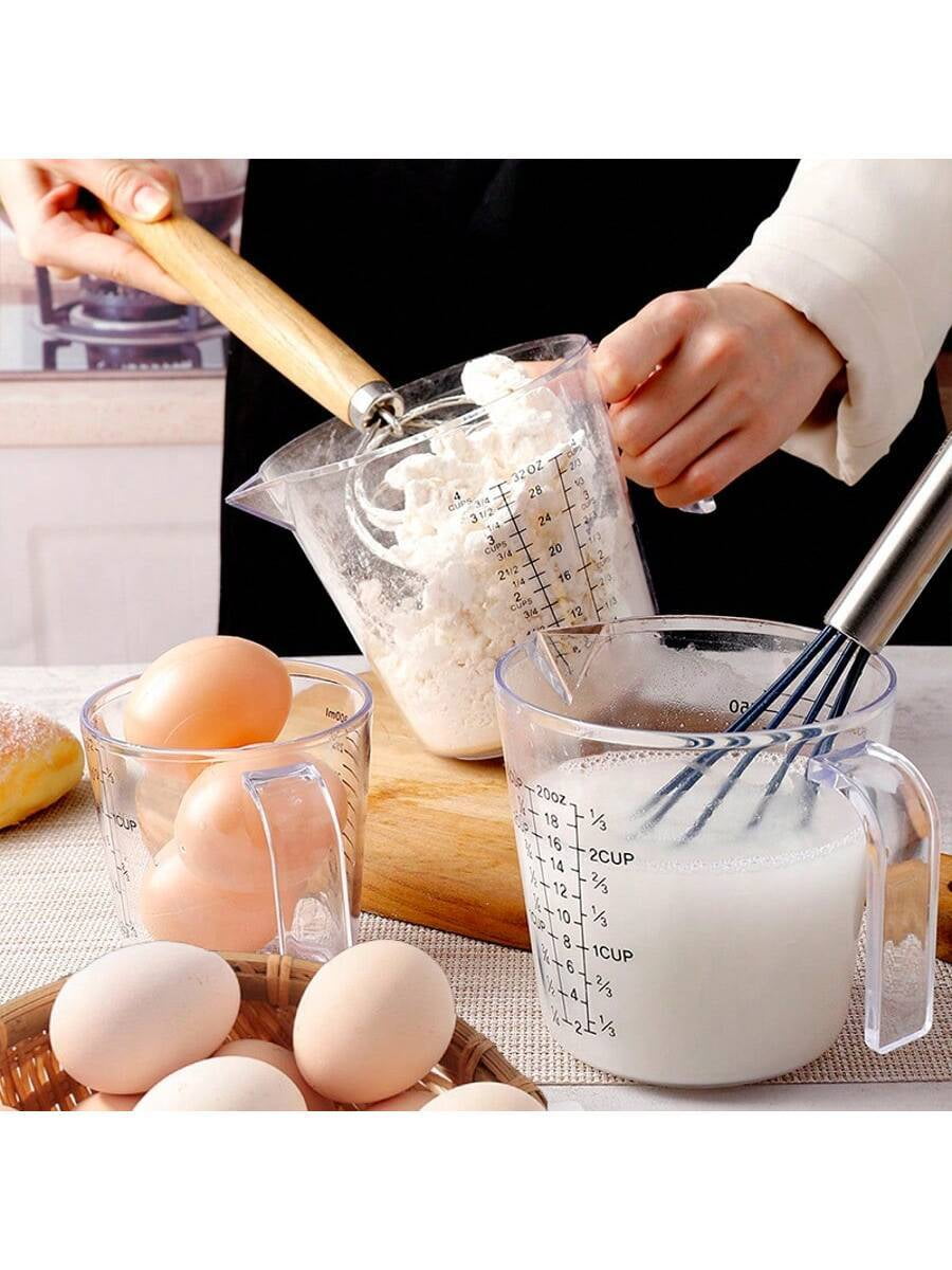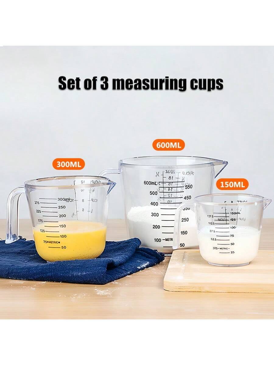 3-Piece Food-Grade Plastic Measuring Cup Set – Clear Ml/Oz Markings for Baking/Cooking (US Kitchens)