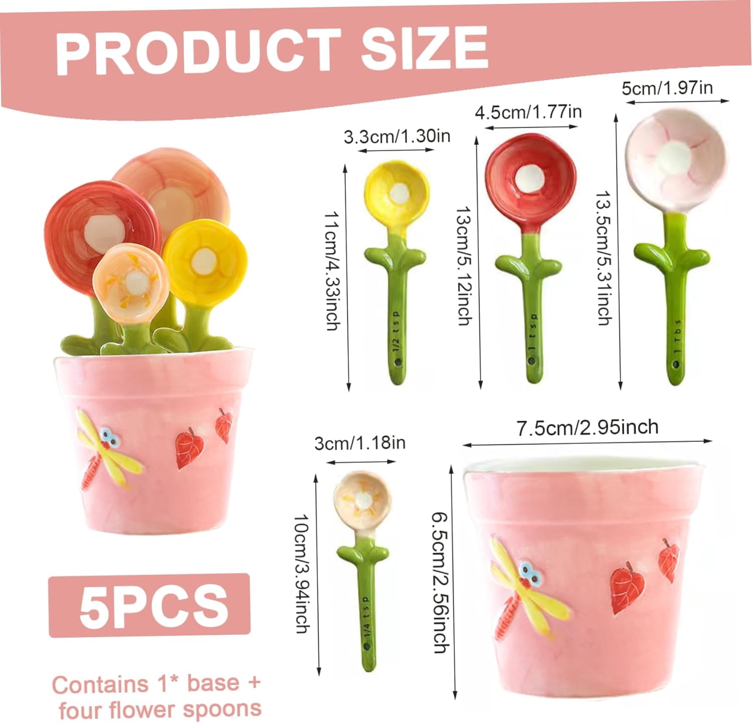 - 【Quality Material】This flower measuring spoons set in pot is made of high quality ceramic material, non-fading, non-toxic, thick and durable, easy to clean and dishwasher safe.