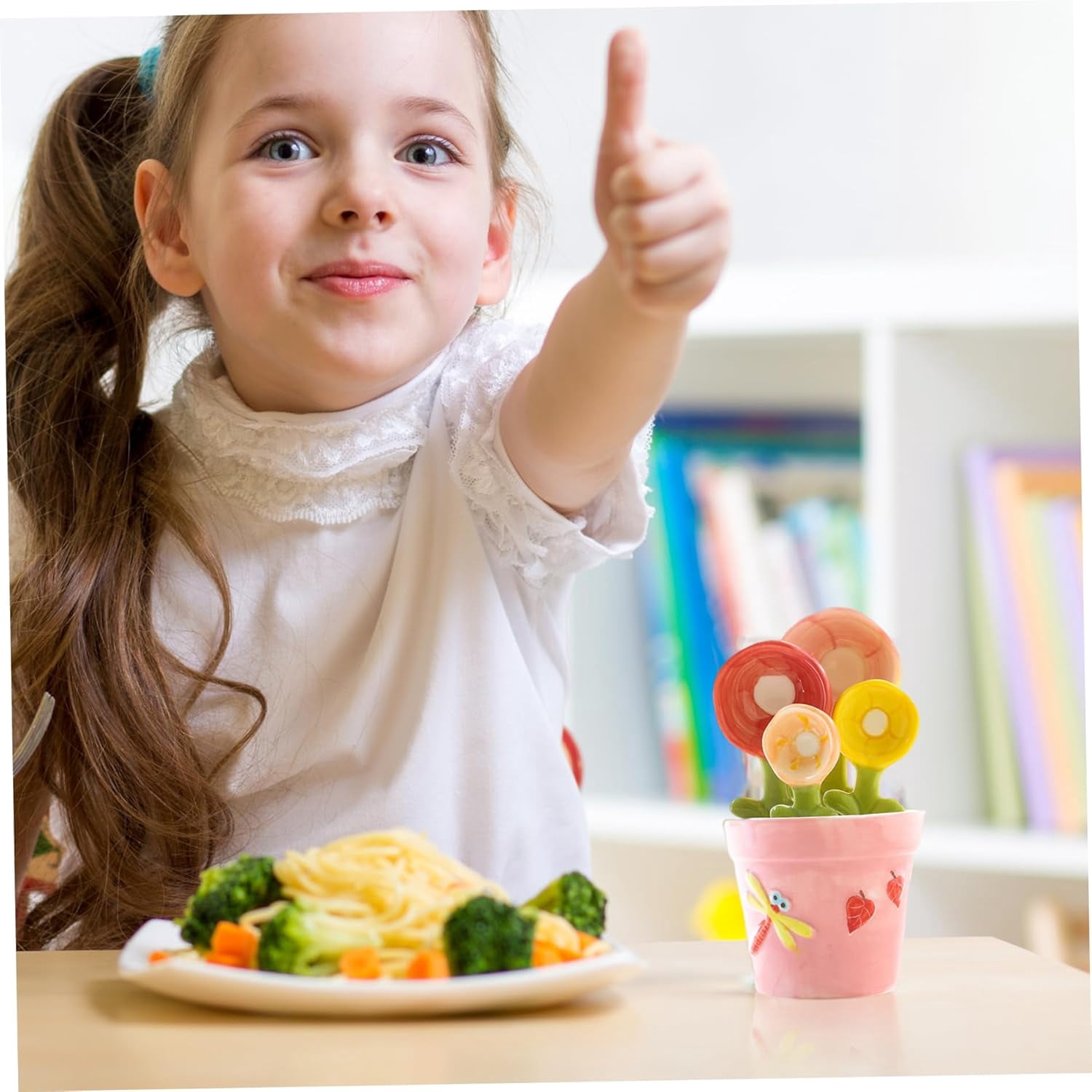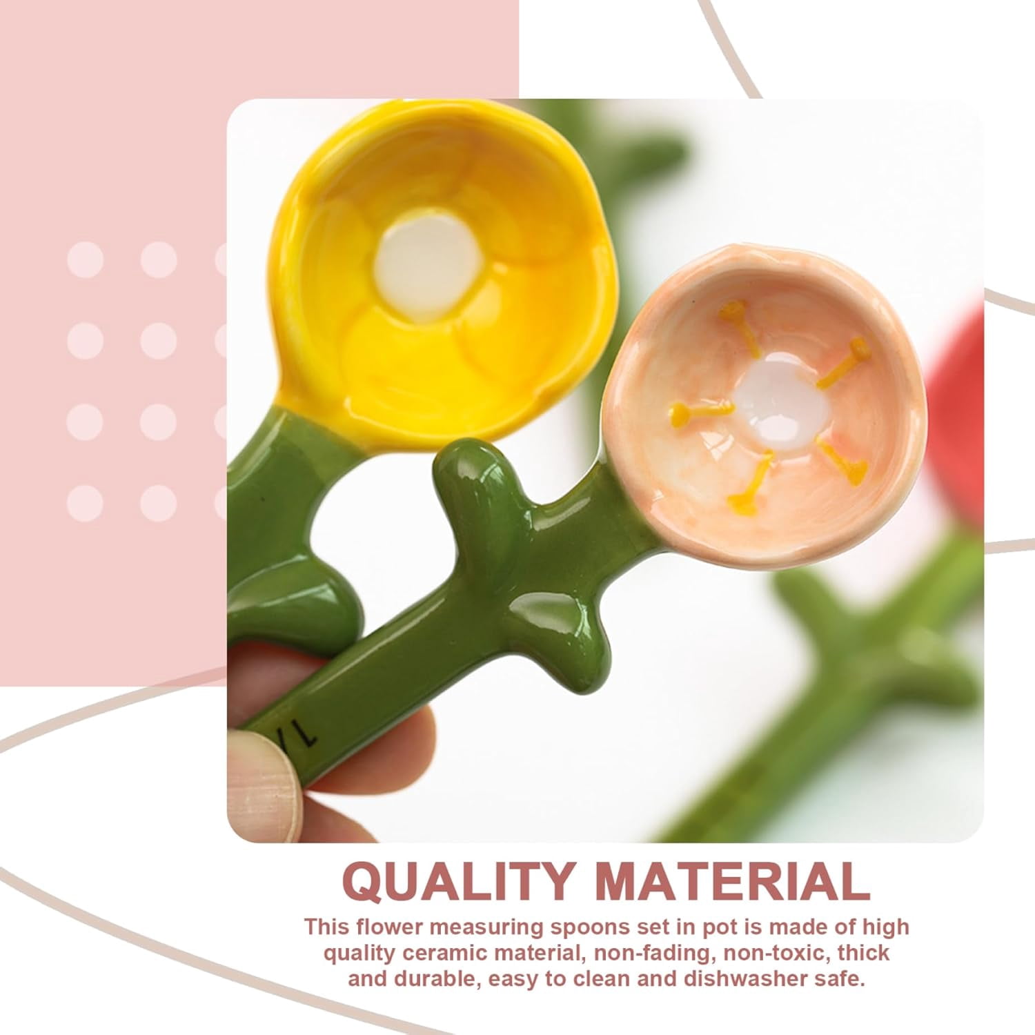 4 Pcs Cute Ceramic Flower Measuring Spoons Set with Base Decorative Flower Pot and Cup Set for Home and Kitchen