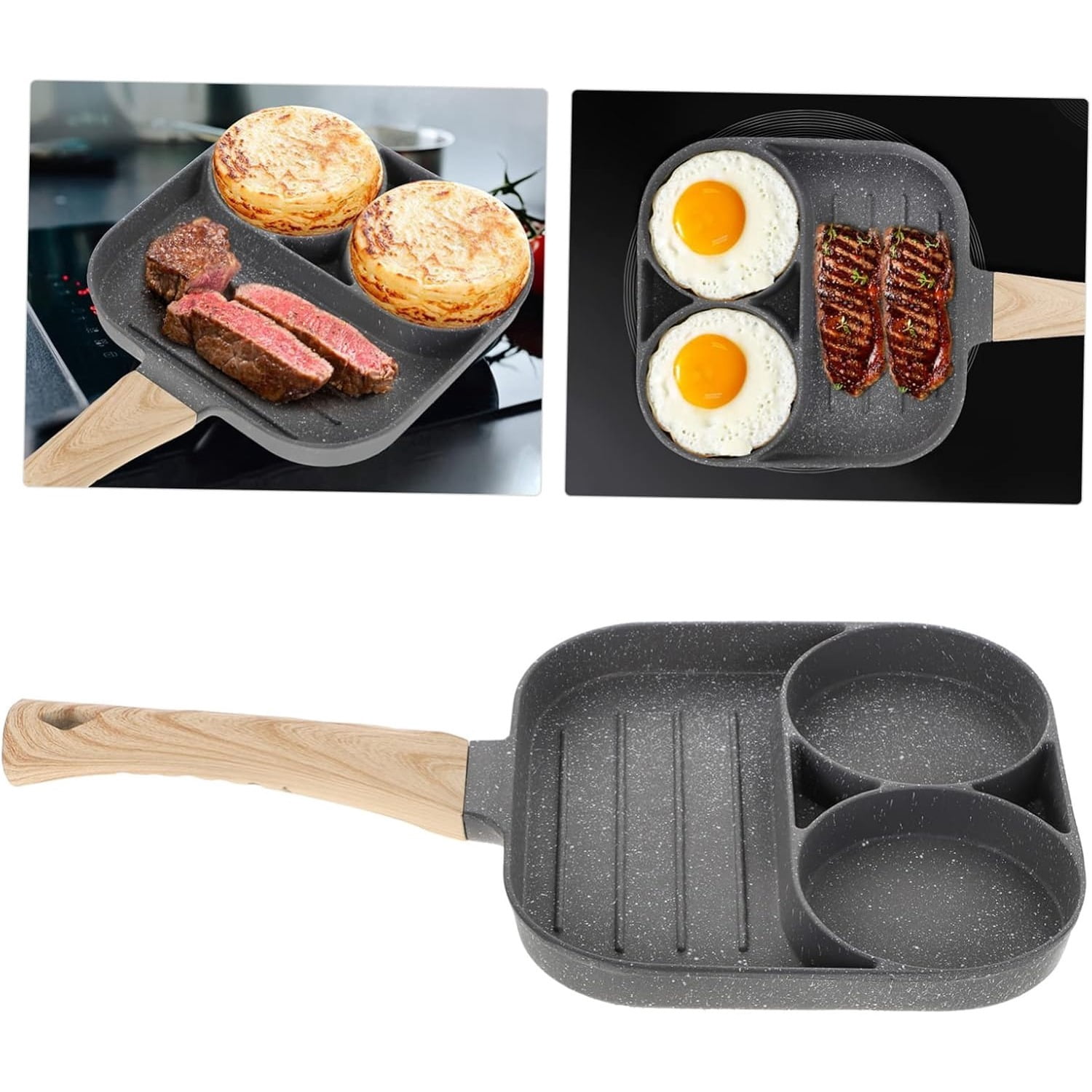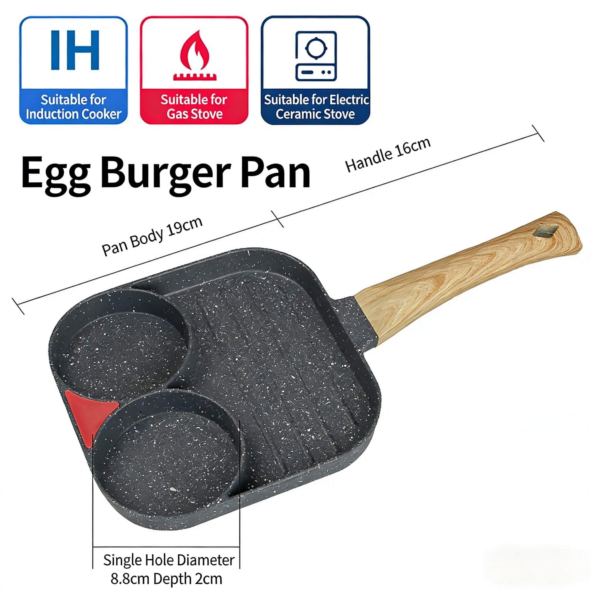 - 3-Section Nonstick Design – Features three individual cups for cooking multiple eggs, pancakes, or omelets at once, saving time and effort during busy mornings.