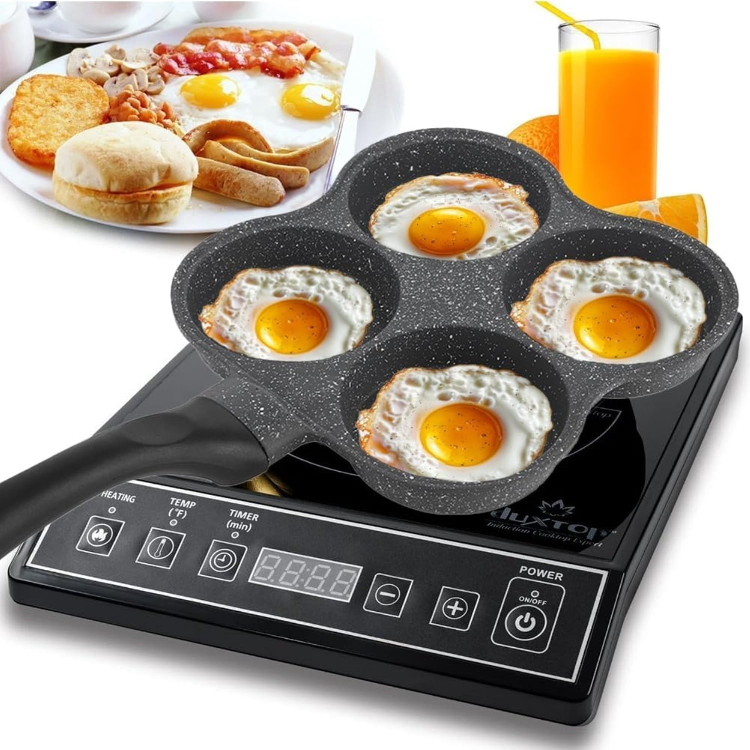 4-Section Nonstick Omelet Pan – 4-Cup Frying Pan for Gas & Induction Cooktops, Perfect for Fried Eggs, Pancakes, Poached Eggs, Egg Burgers, Mini Pancakes