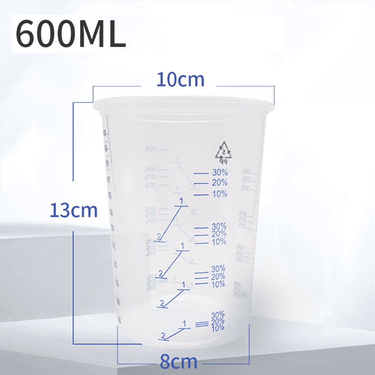 - 60pcs plastic clear paint mixing cup 600ML with measurements.