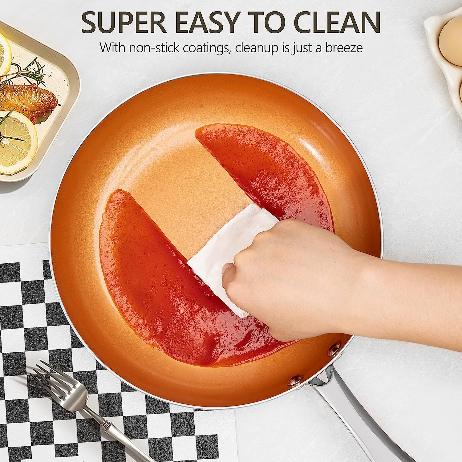 - Ultra non-stick ceramic titanium coating for easy food release and durability