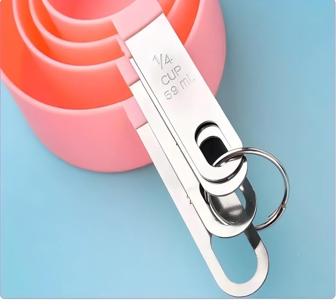 - [exact scale and volume] the stainless steel handle is engraved with visible standard metric units to ensure that you are using the correct measurement. There are 8 different sizes of cups to meet your daily needs. 1 cup (236 ml), 1 / 2 cup (118 ml), 1 / 3 cup (78 ml), 1 / 4 cup (59 ml), 1 tbsp (15 ml), 1 / 2 tbsp (7.5 ml), 1 tbsp (5 ml), 1 / 2 tbsp (2.5 ml)