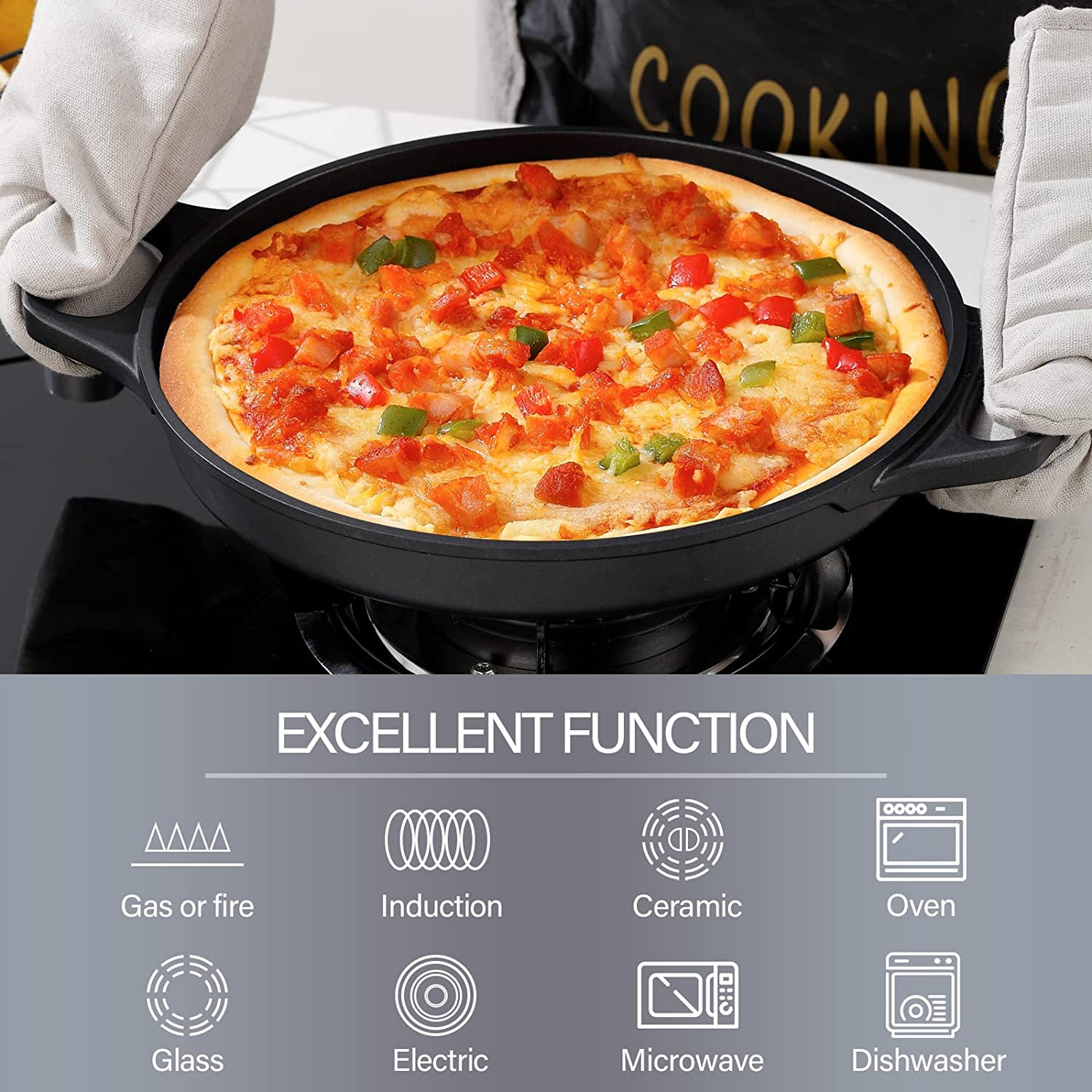- Versatile Nonstick Performance: Equipped with a premium PFOA-free ceramic nonstick coating, this pan allows for healthy low-oil cooking and ensures food slides off effortlessly.Clean up is simple using a soft sponge or rag to preserve the surface integrity.