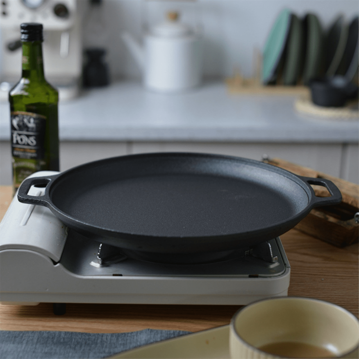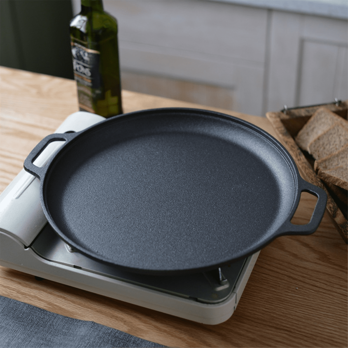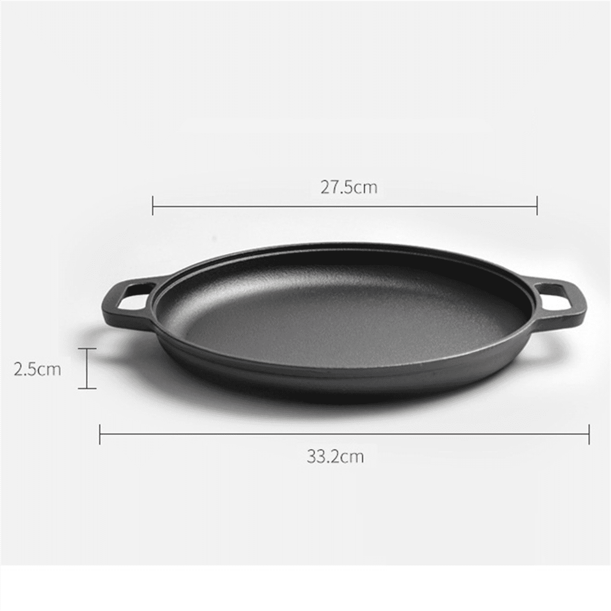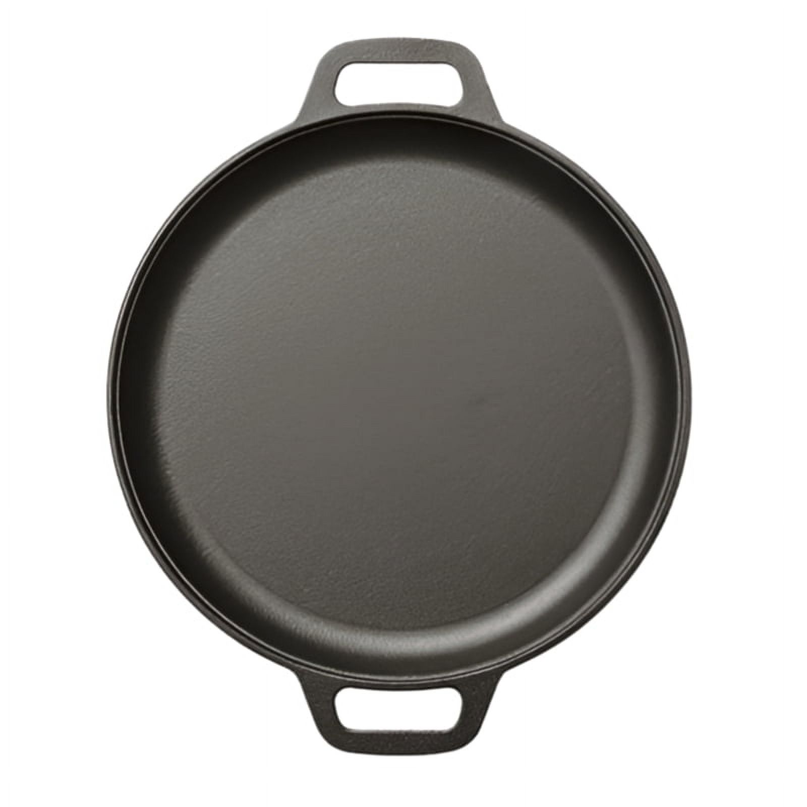 Cast Iron BBQ Camping Frying Pan, Double Handle Non-Stick Pancake Pizza Steak Pork Chicken Cooking Pan