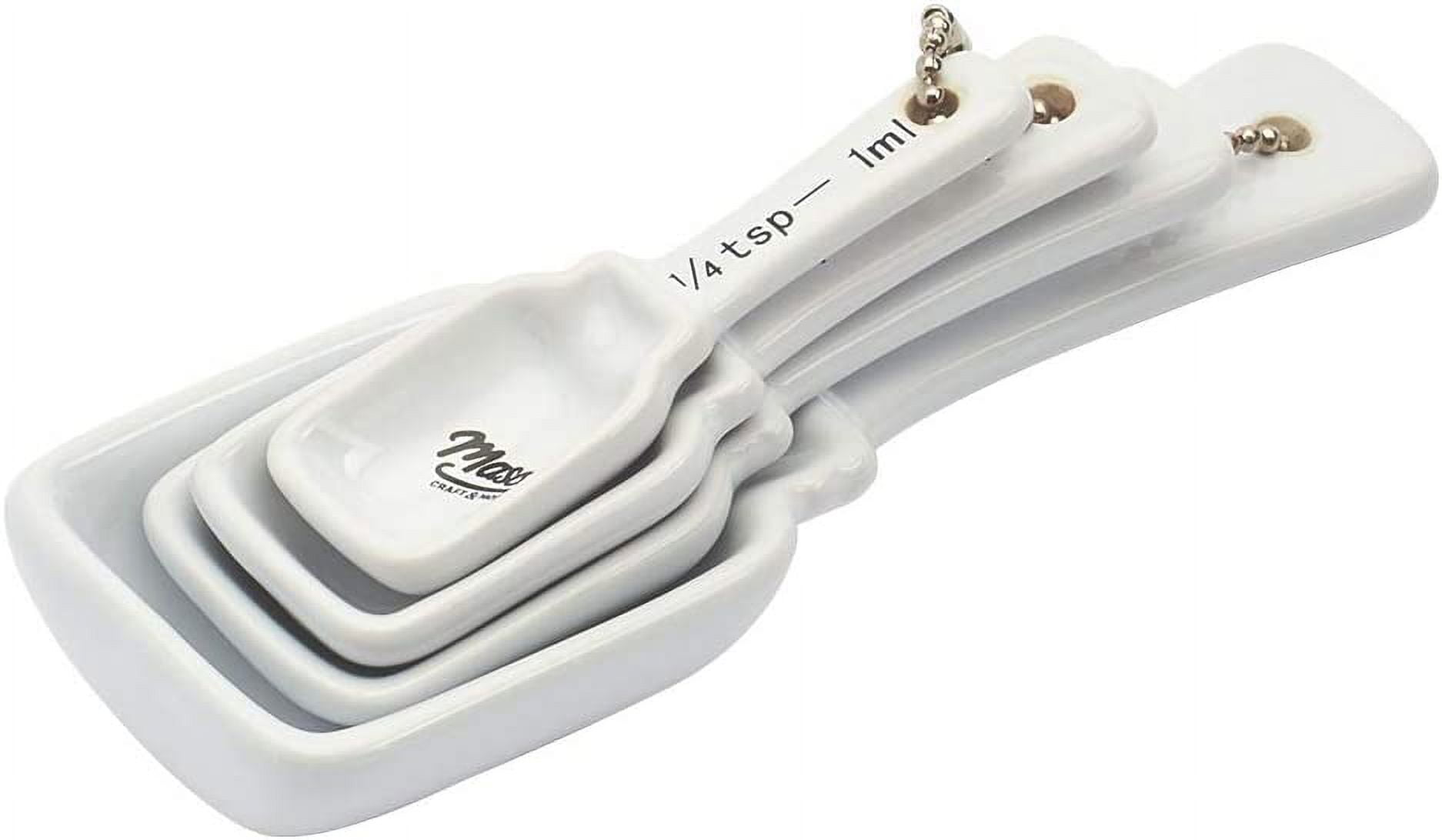 - WHAT’S IN THE BOX. This White Ceramic Measuring Spoon Set comes with the following; 1 Tablespoon, 1 Teaspoon, 1/2 Teaspoon, and 1/4 Teaspoon.