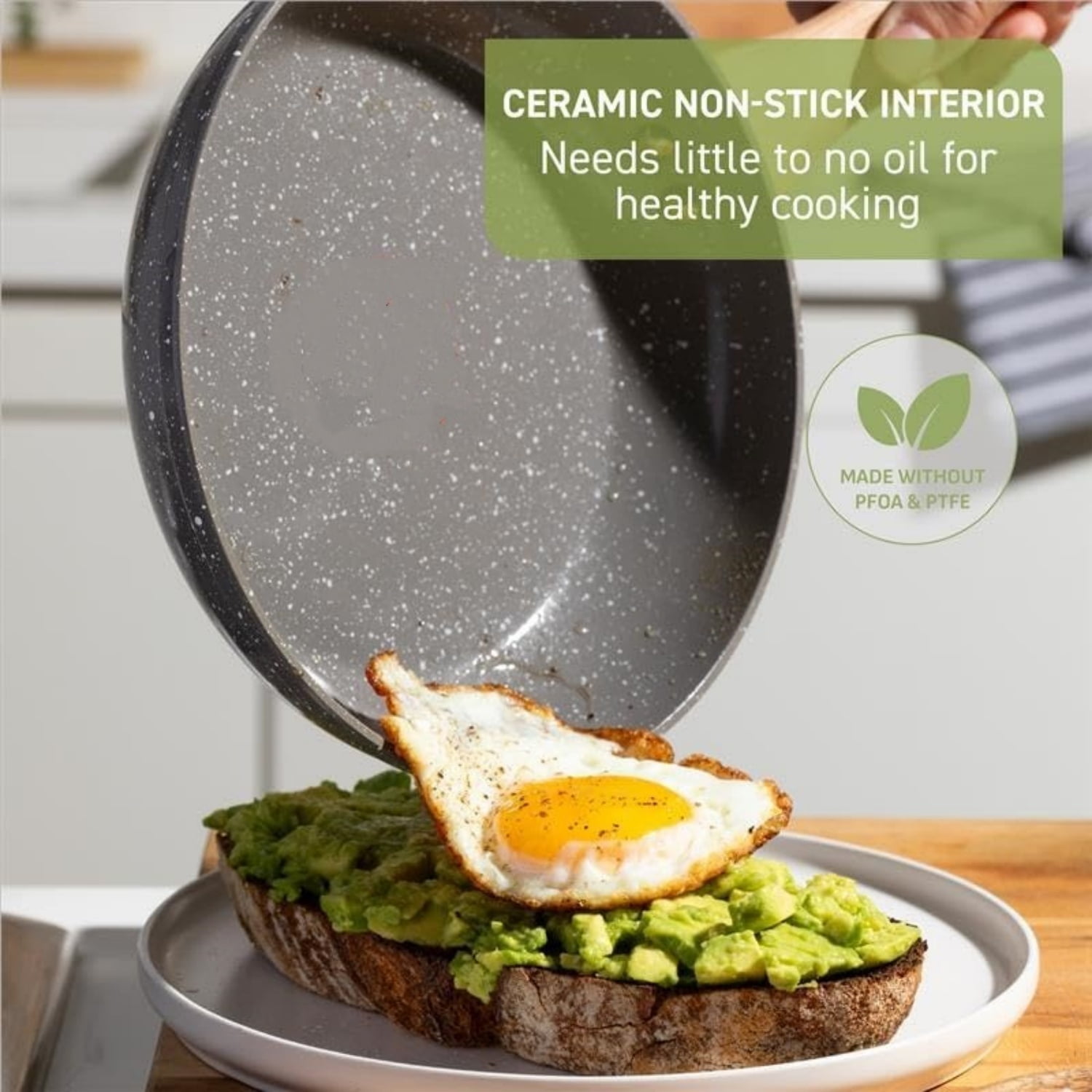 Ceramic Nonstick Frying Pan 12 Inch Skillet, Oven to 350°F, Stay-Cool Handle, Grey Granite