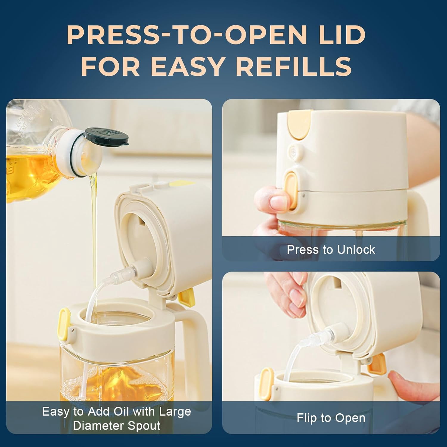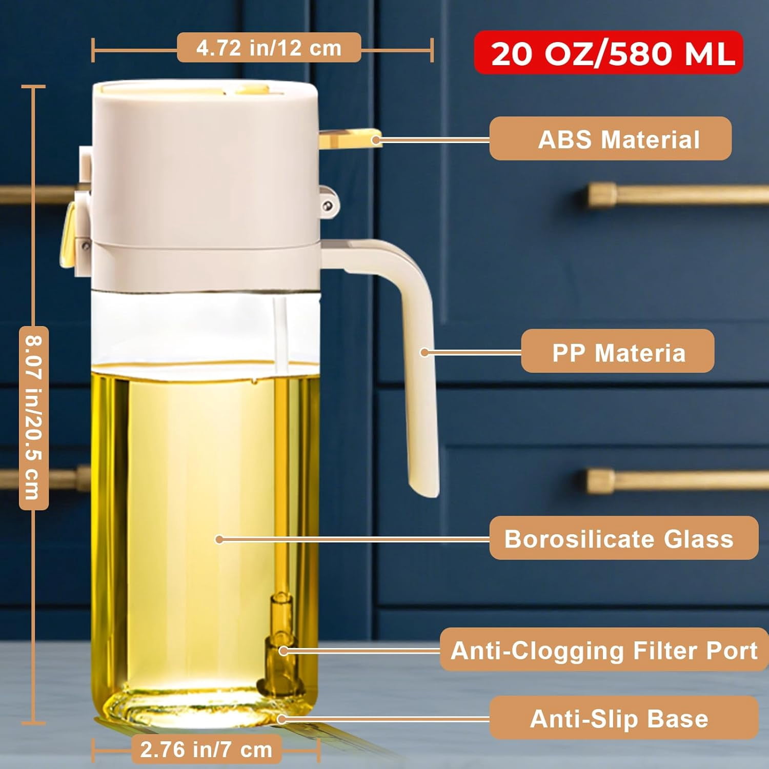 7oz/200ml Capacity: Perfectly sized for daily cooking, this sprayer holds enough liquid for multiple uses while being easy to refill.