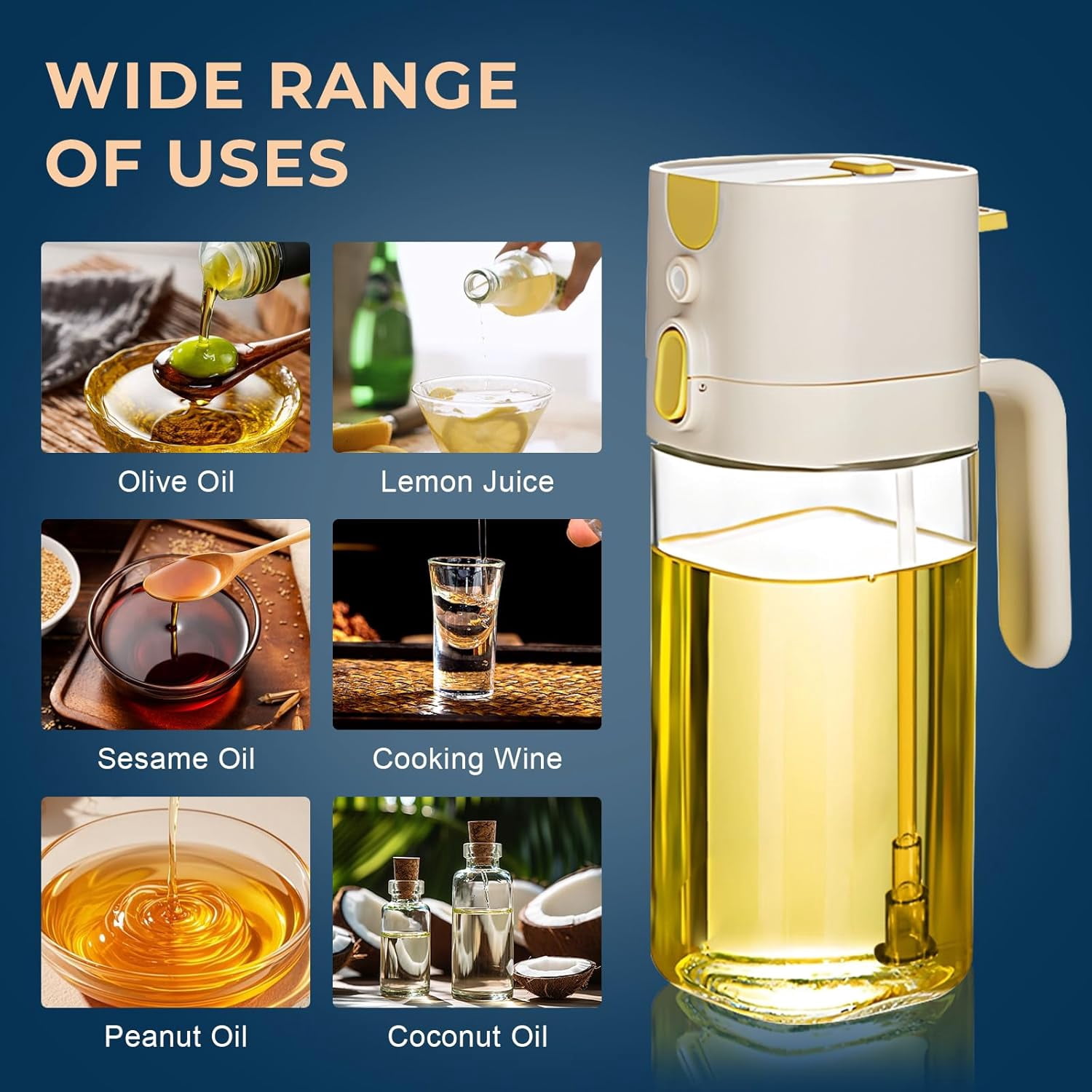 Upgraded Olive Oil Mister: Delivers a fine, even mist of oil, vinegar, or other liquids, helping you cook with less oil and healthier meals.