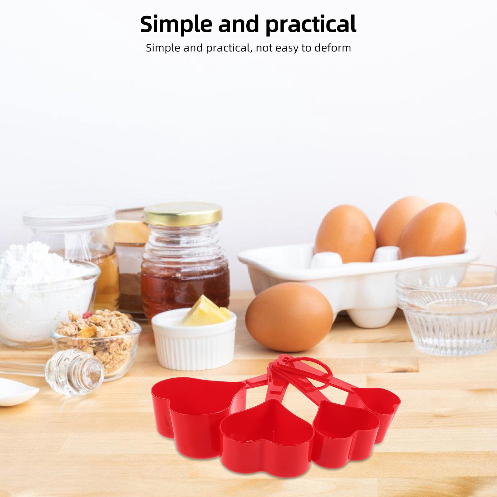 Masteelf Cute Heart Shaped Measuring Spoon Set for Kitchen Use Plastic Red Sizes Nesting Storage