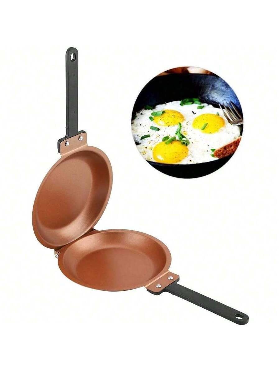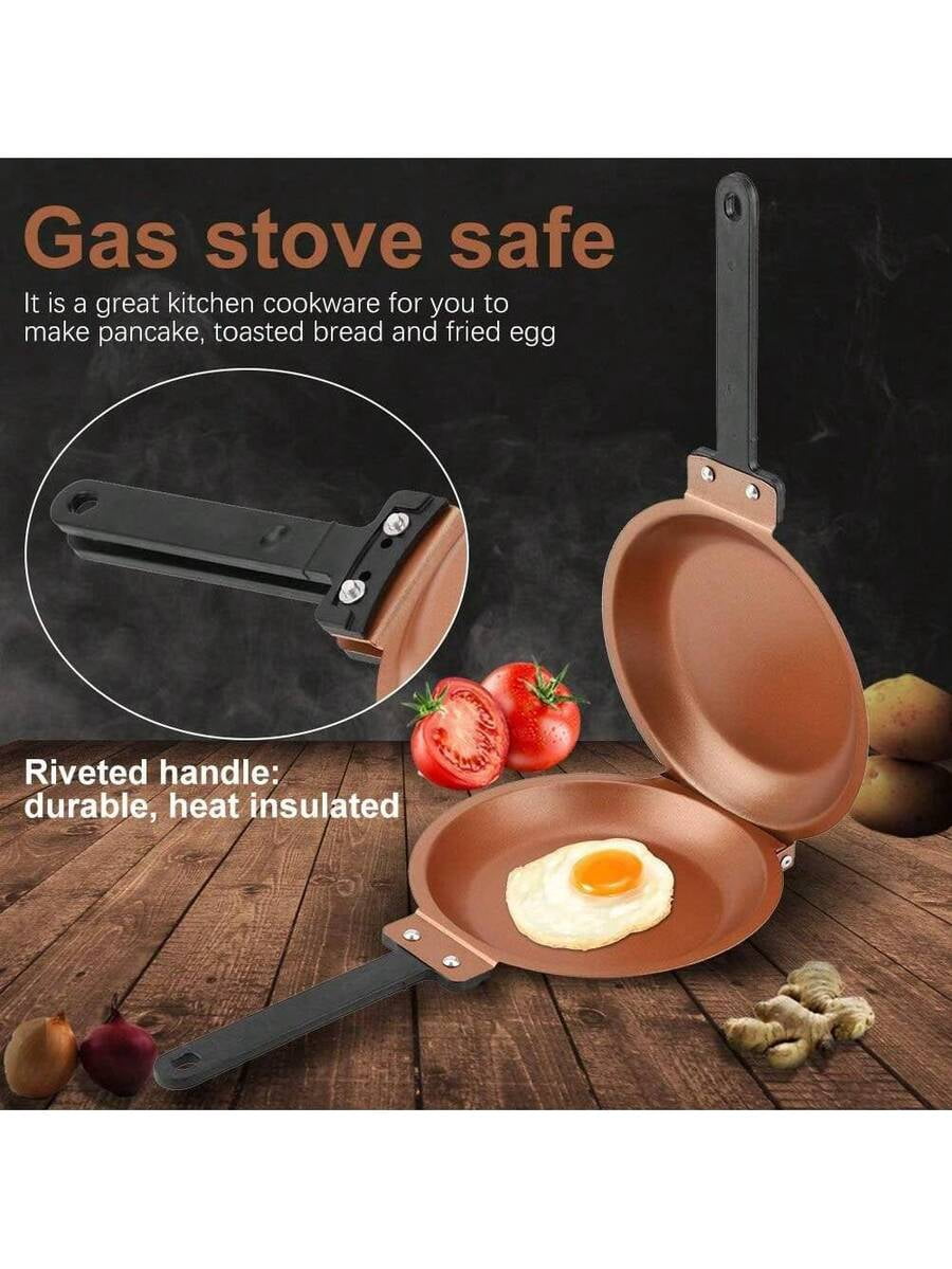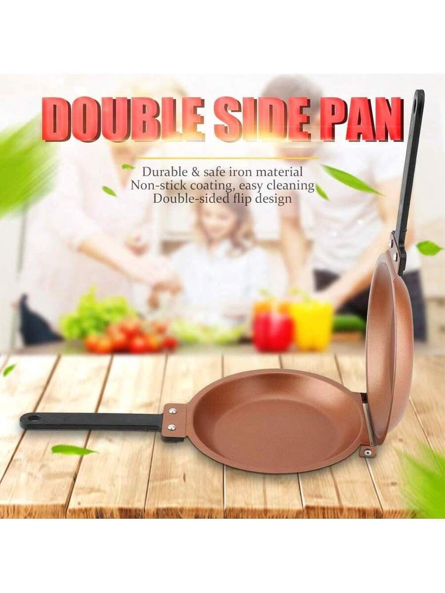 Double-Sided Egg Frying Pan and Non-Stick Pancake Maker, High-Quality Iron Flip-Top Pan for Fried Eggs, Toast, and Omelets, Professional Household Kitchen Utensil, Black