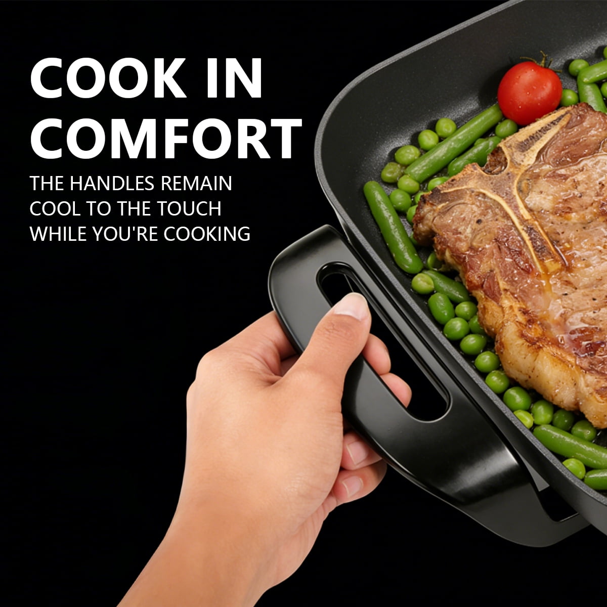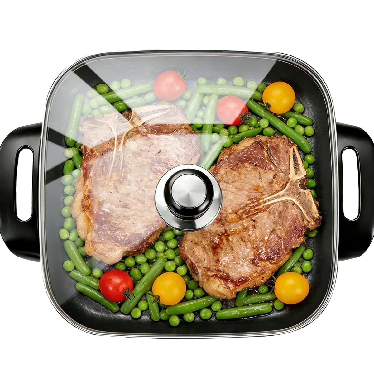 Enhanced Safety: Includes a non-slip base and heat-resistant handles for safe and stable operation, complemented by a transparent lid that locks in heat and moisture.