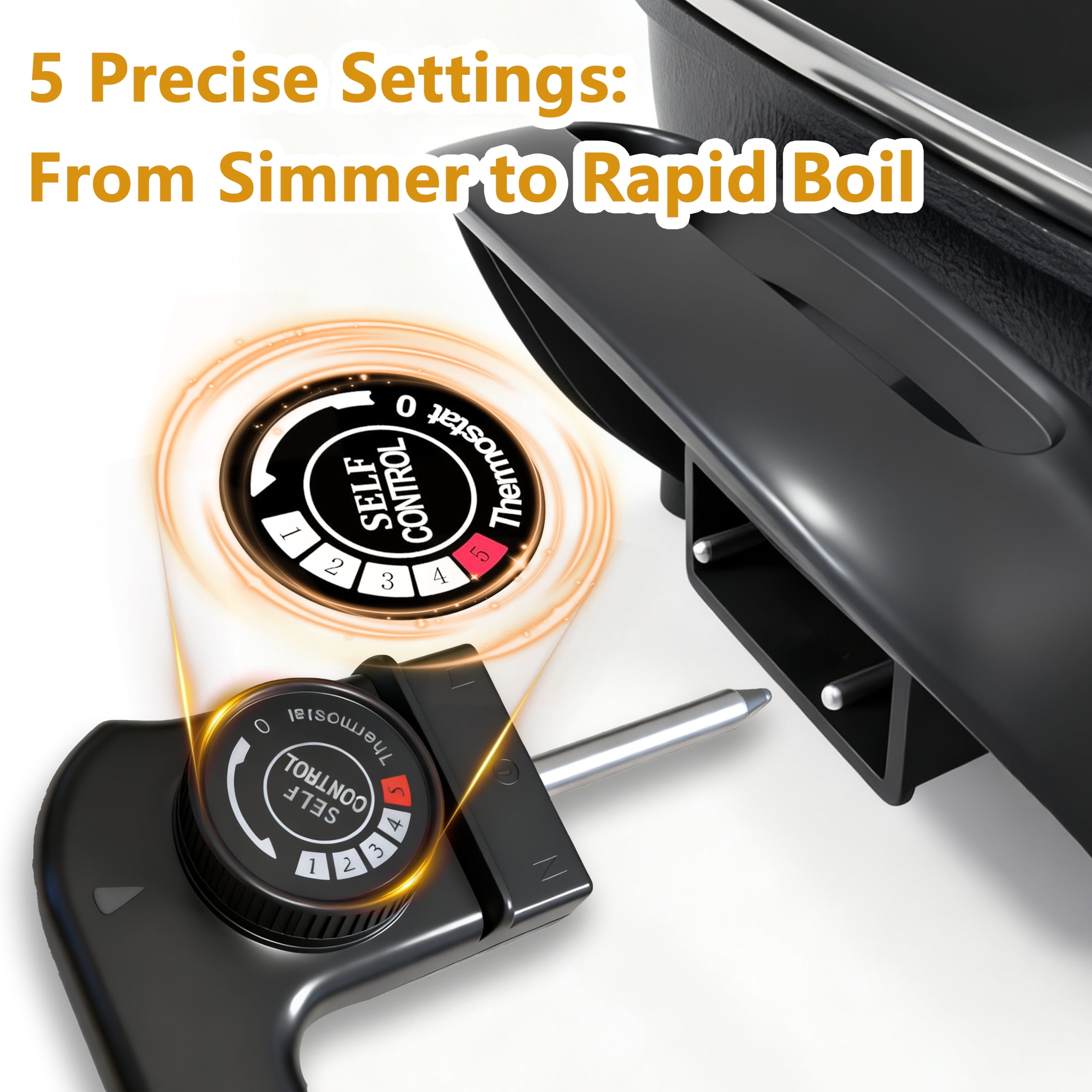 Adjustable Control: Equipped with fully adjustable temperature settings, allowing for versatile cooking applications such as frying, grilling, and simmering.
