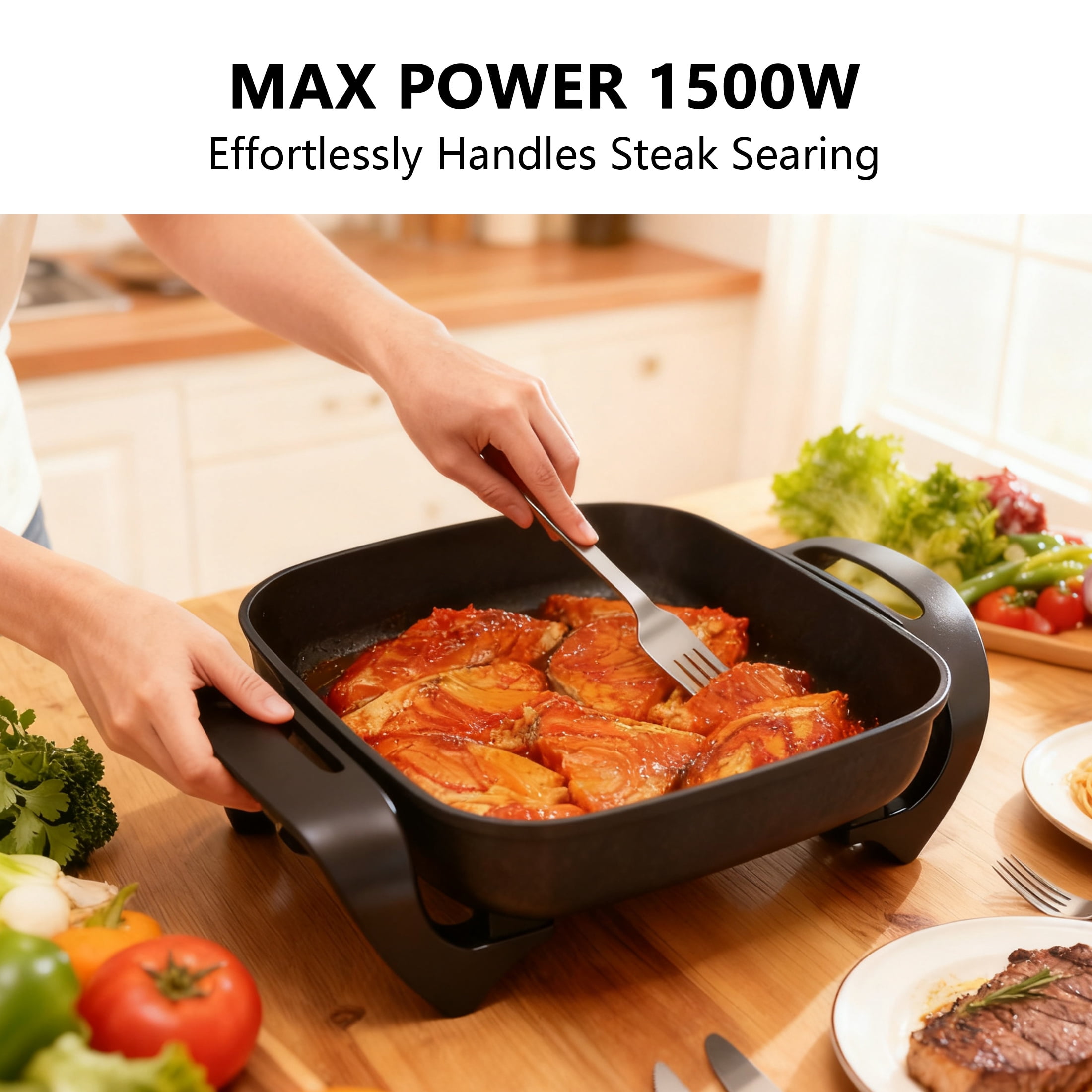 Powerful Heating: Features a 1500W fast heating system for rapid preheating and consistent cooking performance, ensuring efficient and uniform heat distribution.