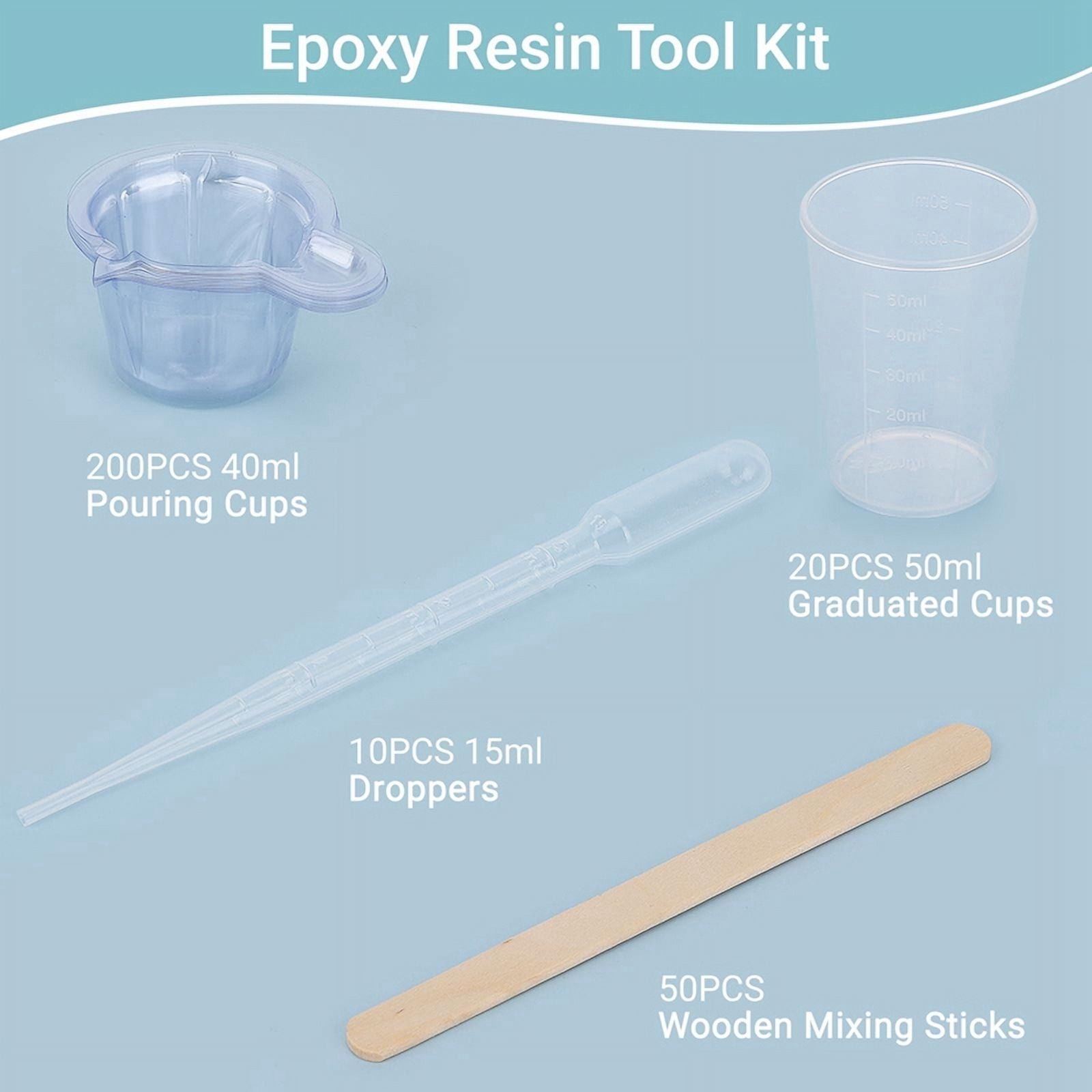 Epoxy Resin Tool Kit, 20Pack Plastic Graduated Cups, 200 Pack 40ml Disposable Measuring Cups, 10 Pack 15ml Droppers 50ML