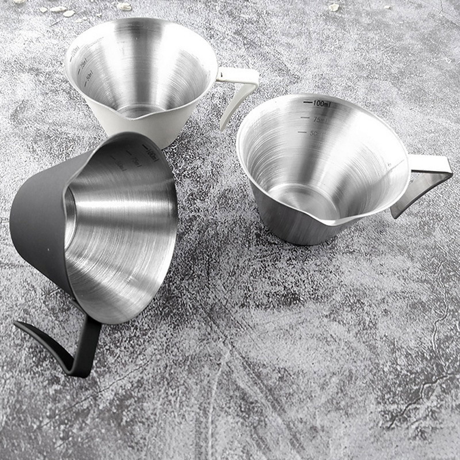 Espresso Measuring Cup with Handle 2 Pack Double Shot Espresso Cups Stainless Steel Espresso Pouring Cup Silver
