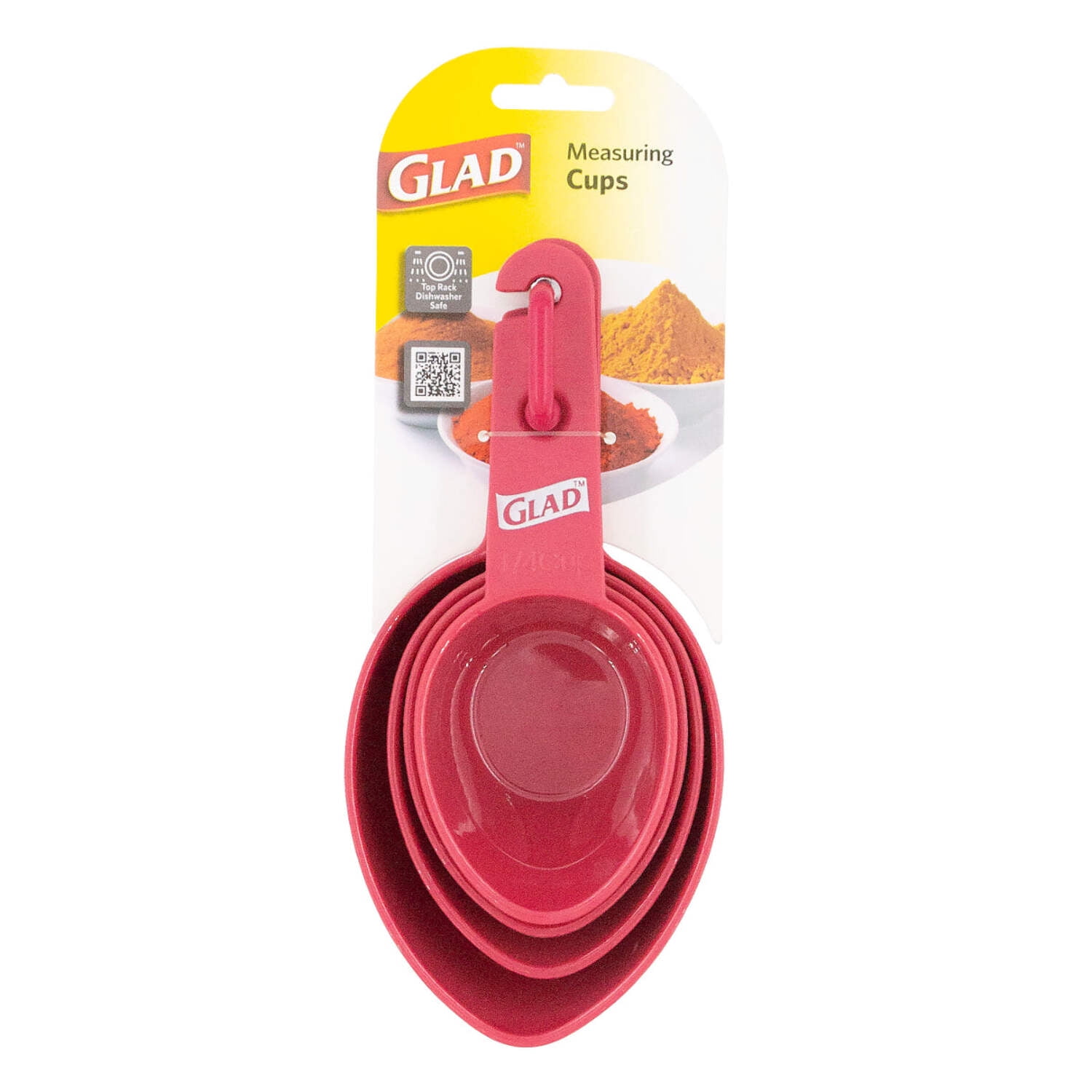 GLAD Measuring Cups in Red offer a reliable set of four cups designed specifically for dry ingredients. Crafted for durability, these measuring cups withstand daily use and are dishwasher safe for easy cleanup. Their vibrant red color adds a pop of style to your kitchen while ensuring precise measurements every time, making baking and cooking simpler and more enjoyable.