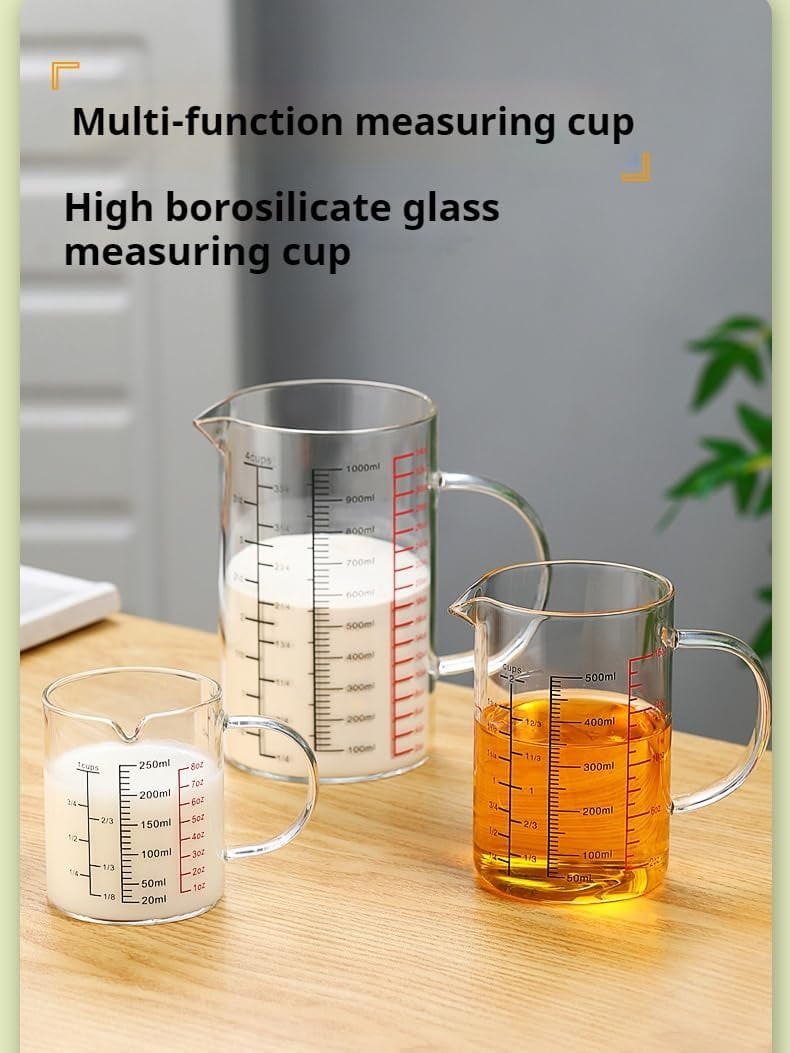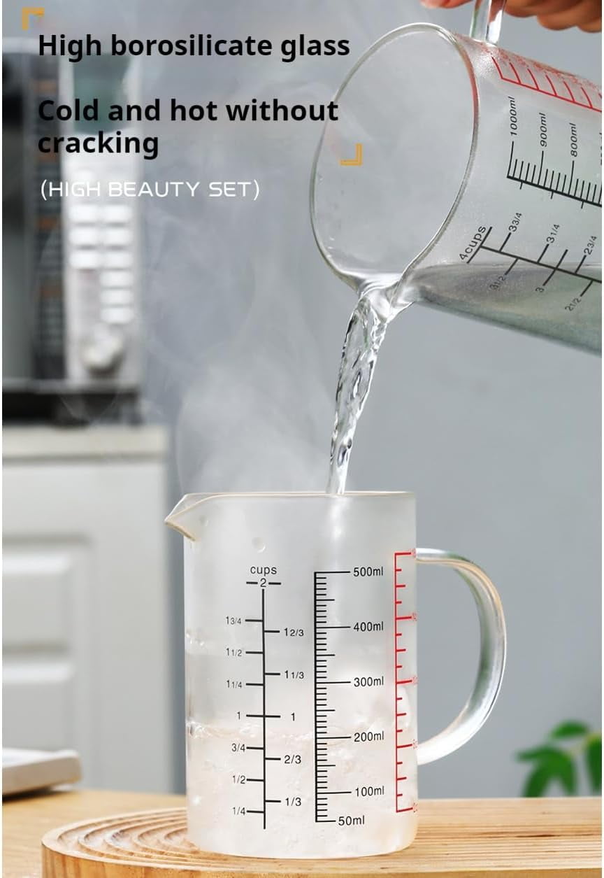 Glass Measuring Cup with 3 Scales, 1000 ml/34 oz/4 Cups, Heat-Resistant with Handle and V-Shaped Spout (500ml-Glass)