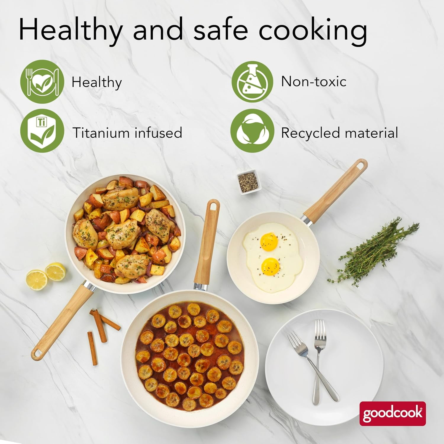 - Healthy & Safe Cooking: Features a toxin-free, nonstick titanium-infused ceramic surface that allows for less oil usage while ensuring easy cleanup and long-lasting durability.