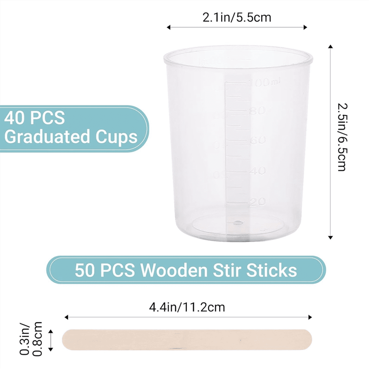 HOT 90PCS Epoxy Mixing Cups Kit, 40PCS Graduated Transparent Scale with 50 Pack Wooden Stirring Sticks 100ML