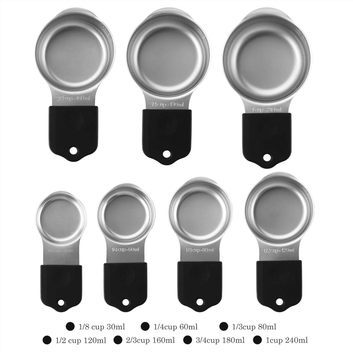 - Comprehensive Set: This all-inclusive set contains 1/8 cup, 1/4 cup, 1/3 cup, 1/2 cup, 2/3 cup, 3/4 cup, and 1 cup sizes, meeting diverse culinary requirements.