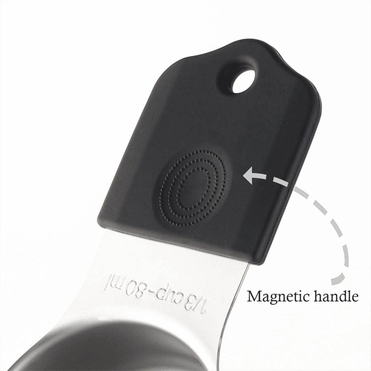 - Space-Saving Storage: Designed for convenience, the magnetic measuring cups are stackable with a sleek bottom and include a storage ring for compact flat storage or hanging, saving drawer space.