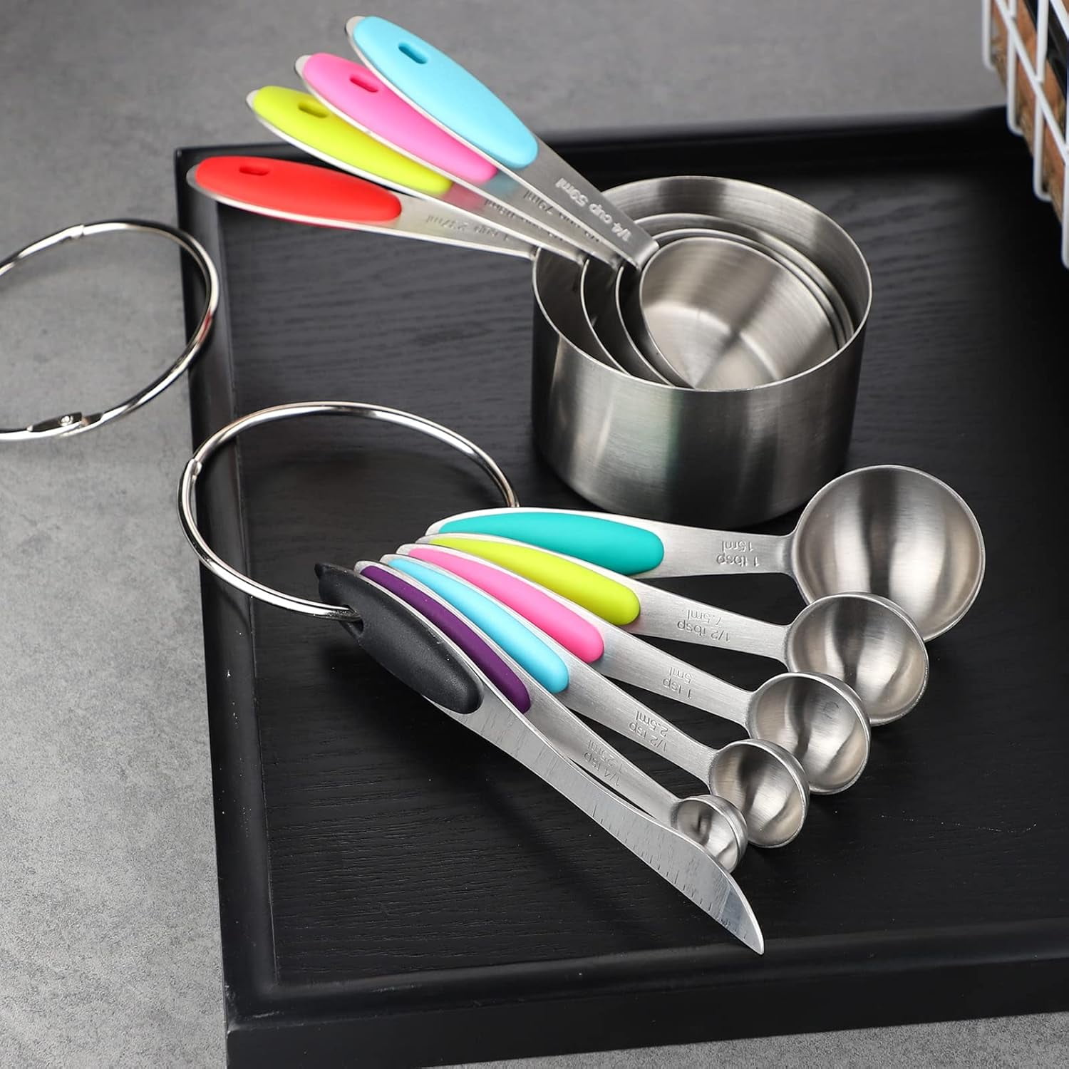 - Easy to Store: This metal measuring cups and spoons set can be stacked and stored in the kitchen drawer to save space and reduce clutter, or hung with storage rings for easy access when in use.