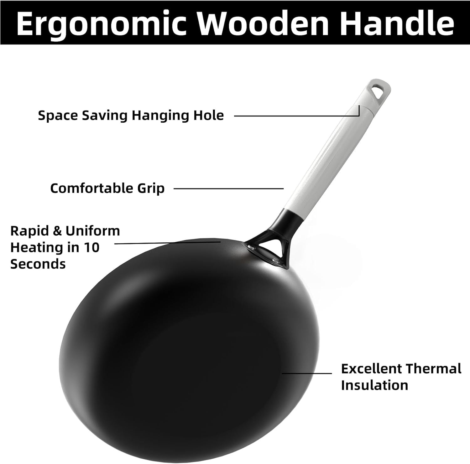 Removable Wooden Handle: Made of high-quality acacia wood, the handle is easy to install and remove. It’s heat-resistant and stylish, featuring a hanging loop for convenient storage.