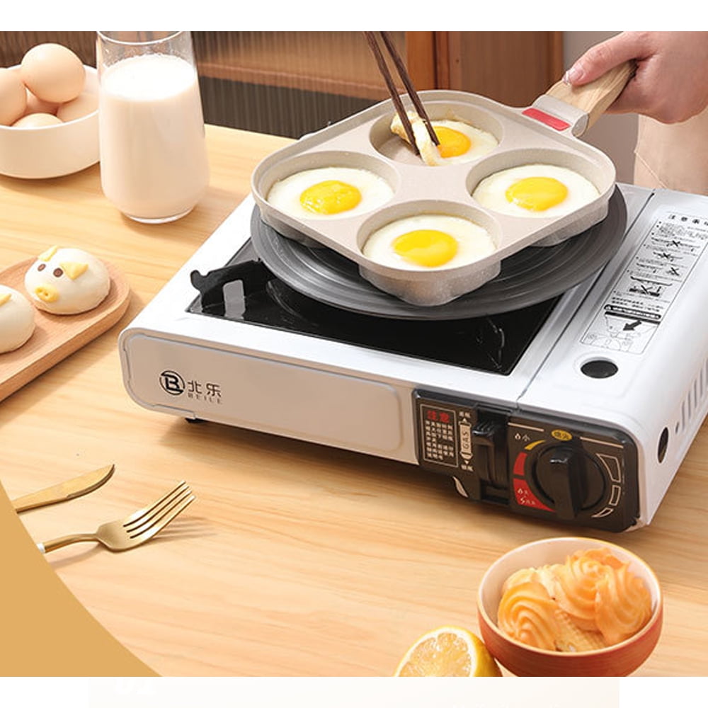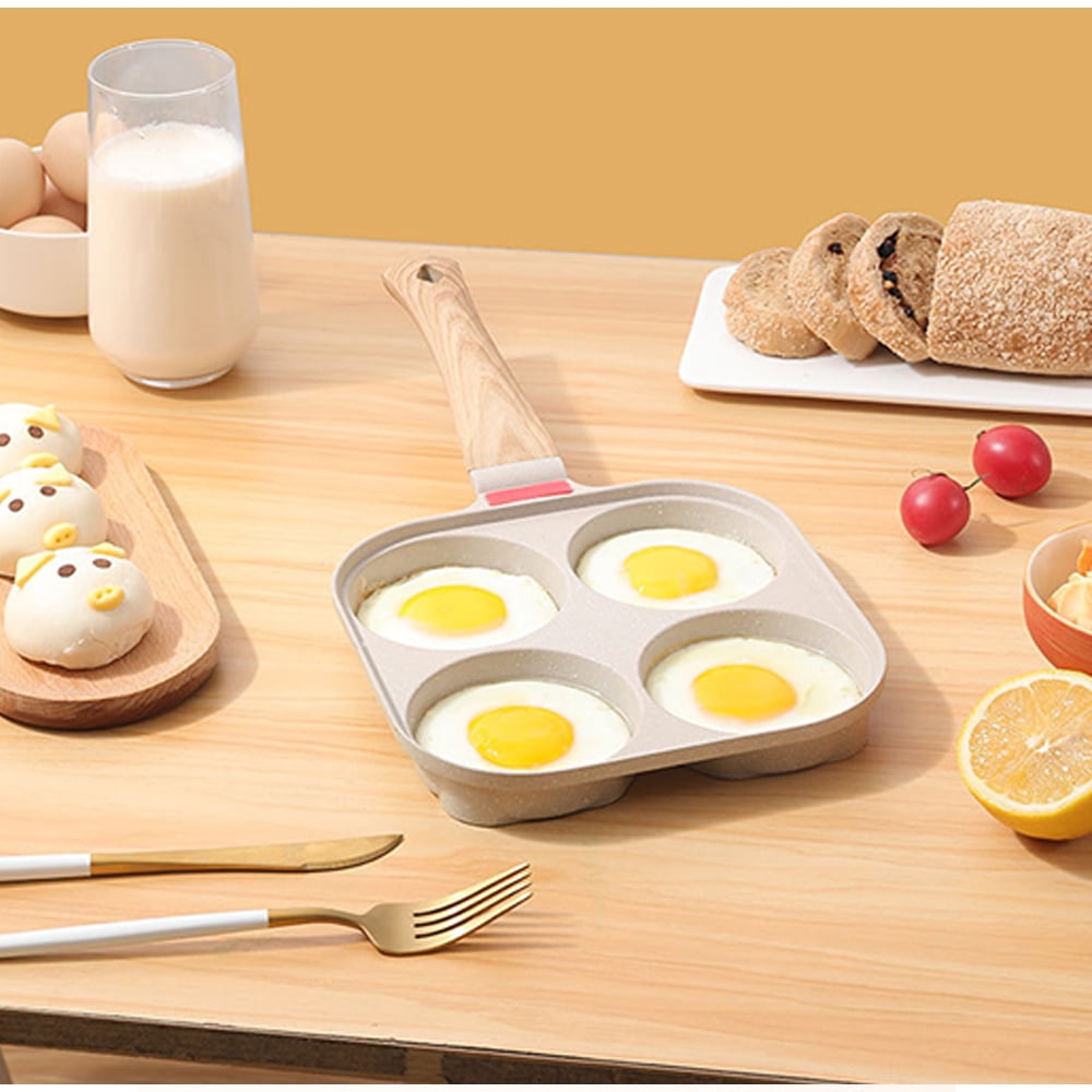 Ceramic Egg Frying Pan with Lid, Nonstick 4 Cup Fried Egg Pan with Detachable Handle, Omelette Pan Induction Compatible – Brown