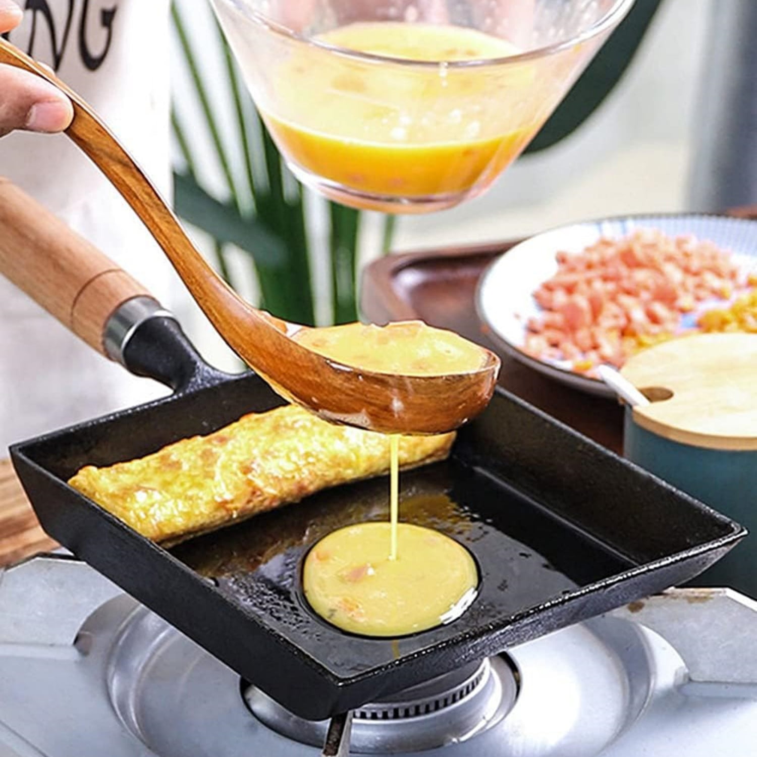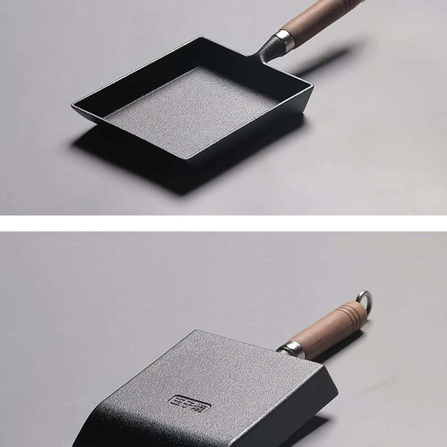 Pre-Seasoned Cast Iron Tamagoyaki Pan – 9×7 Inch Japanese Rolled Omelet Pan, Non-Stick & Rust-Resistant, Ready to Use with Wood Handle, Works on All Stovetops, Camping & Kitchen