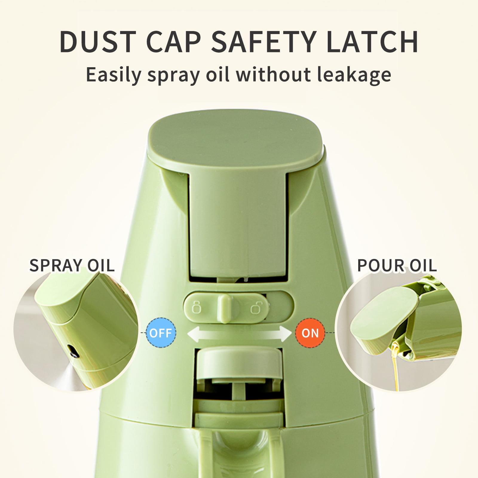 - Dust Cap Safety Lock: The spray bottle is equipped with a dust cap safety lock. The dust cap effectively blocks dust and keeps the oil clean and hygienic, while the safety lock design prevents accidental touching that could lead to liquid spillage, so you can feel more at ease when using.