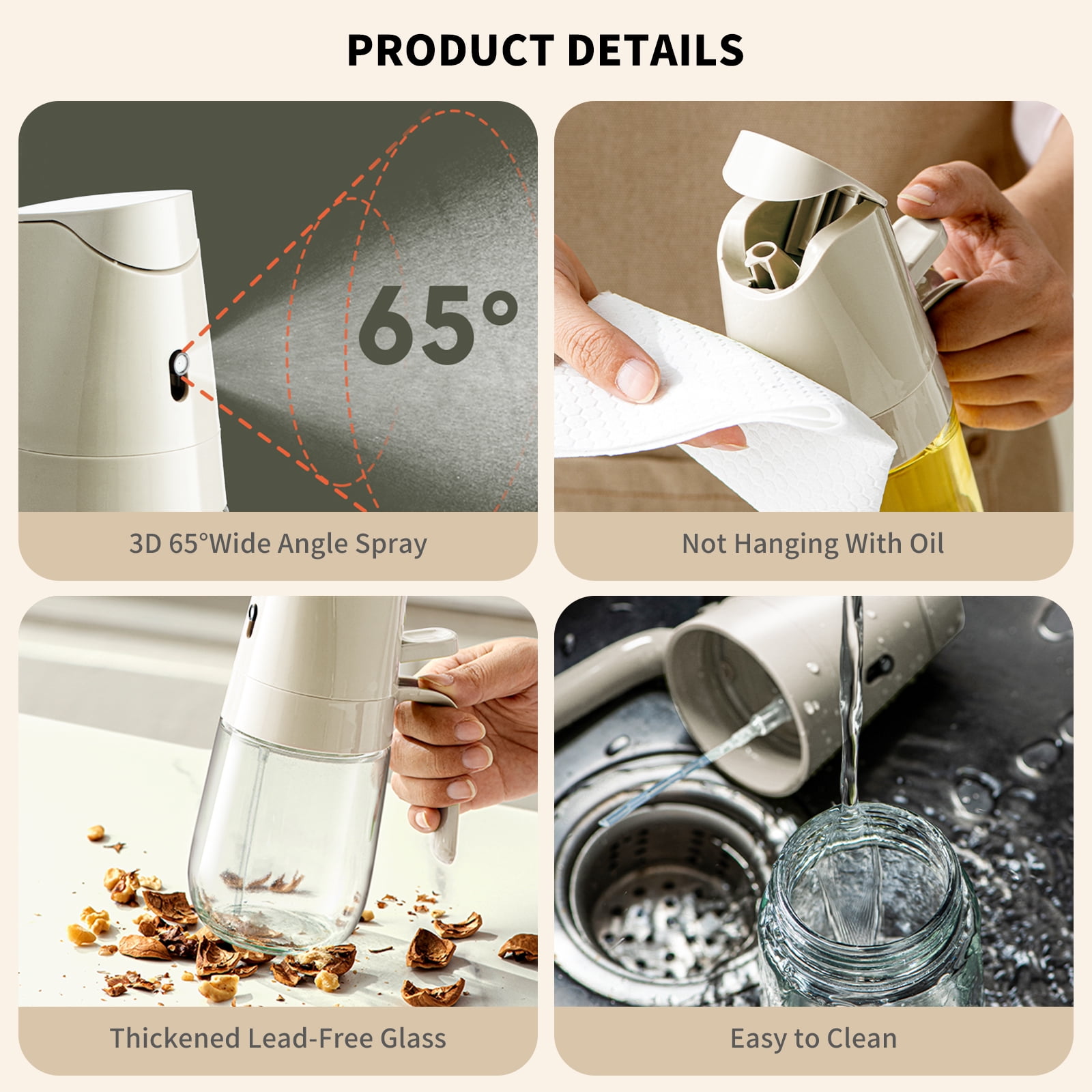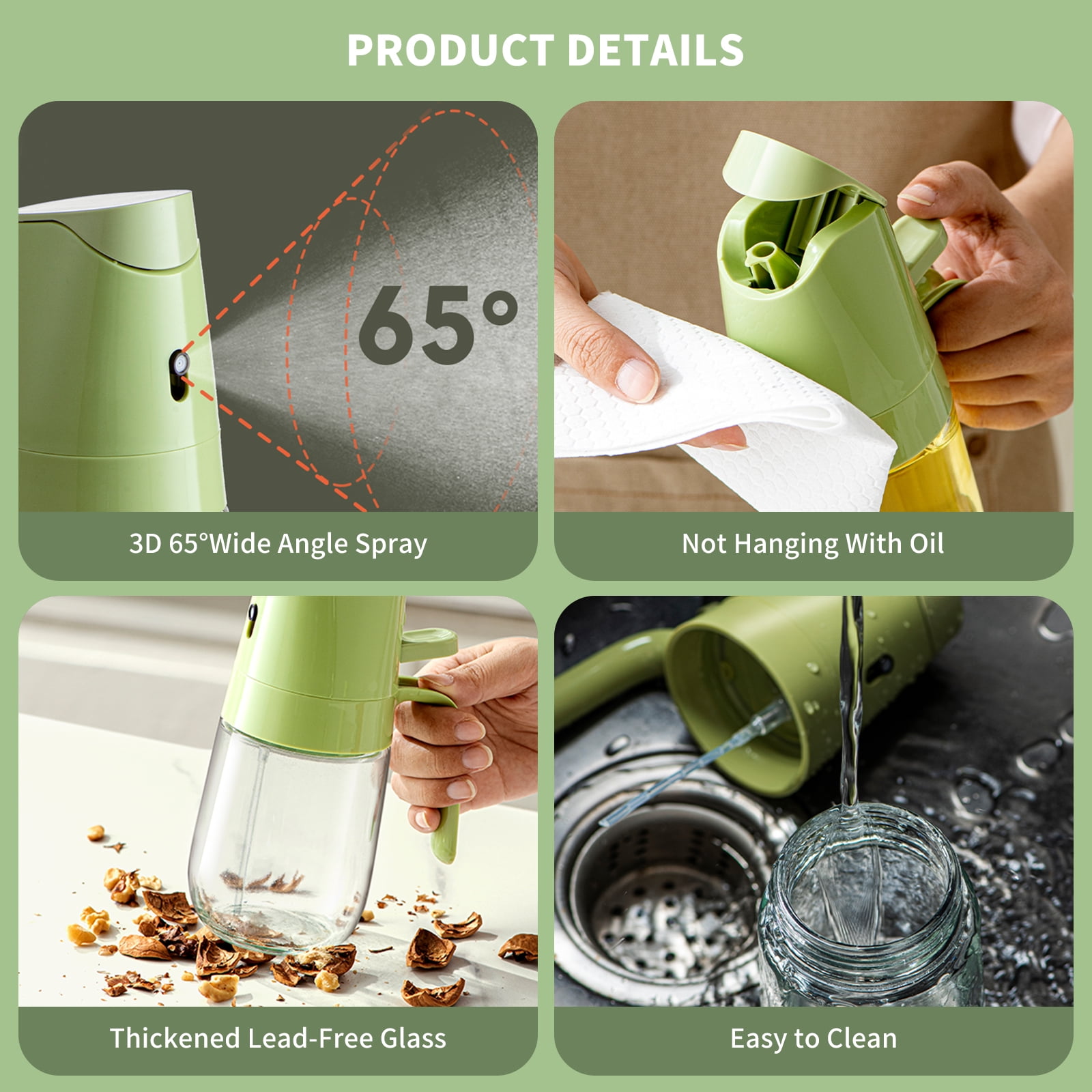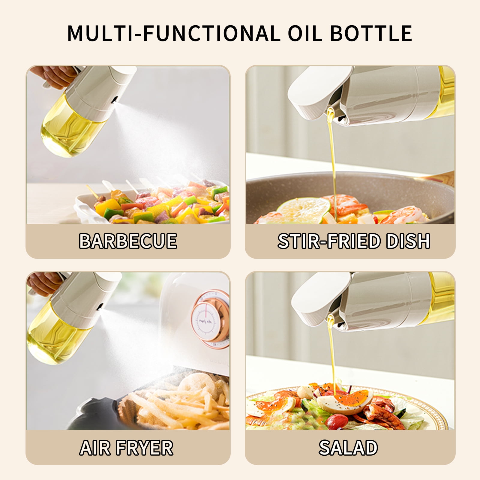 - 2-in-1 Oil Dispenser: As a versatile kitchen tool that the oil dispenser can be used as both a oil spray bottle and a oil dispenser bottle, allowing you to easily switch between modes to suit your cooking needs.