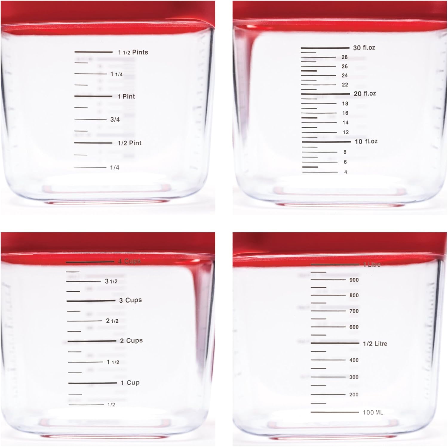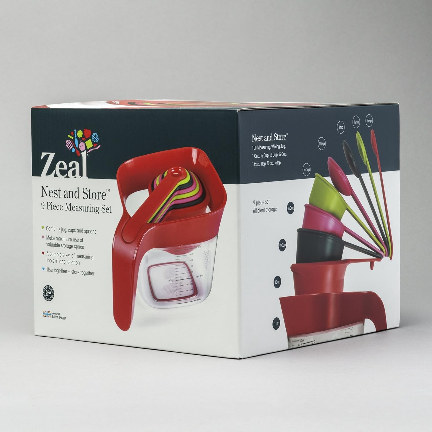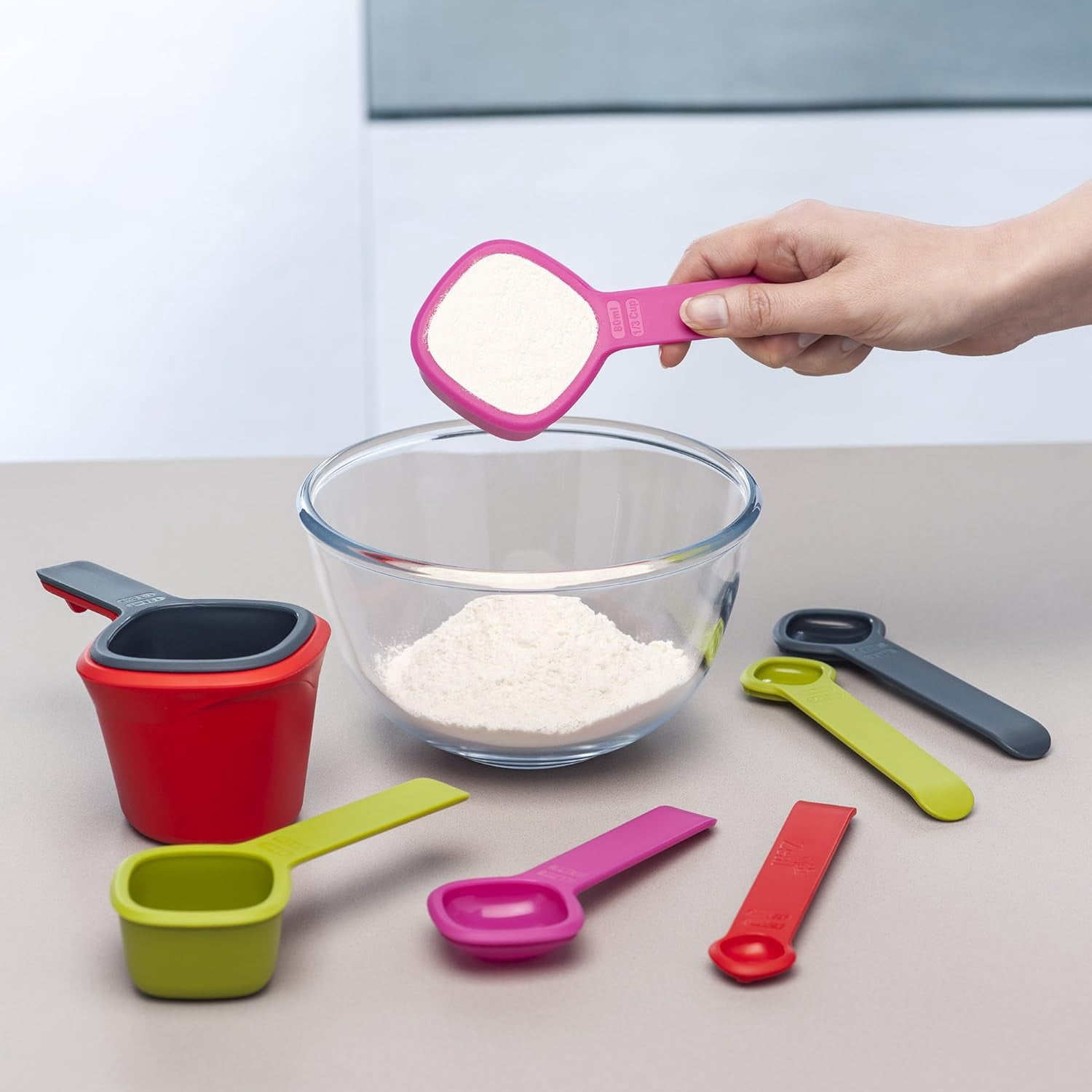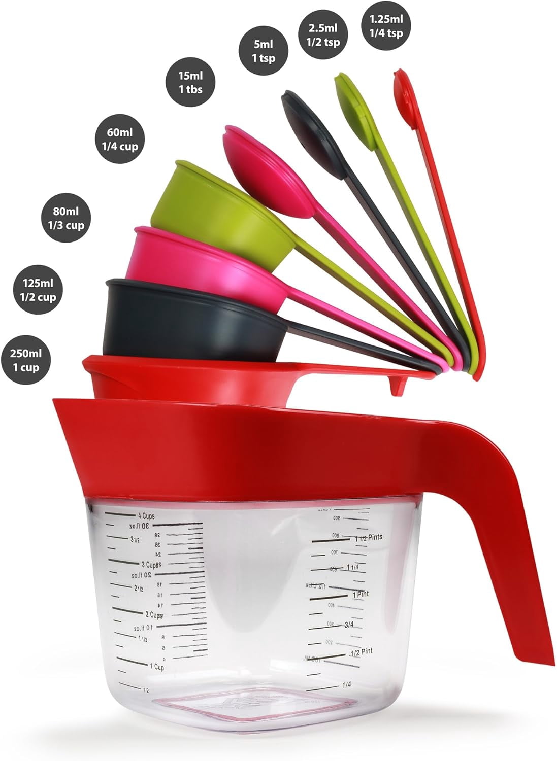 Stack and Store Measuring Jug Set with Cups and Spoons, Red – 1L Capacity BPA-Free Kitchen Tools