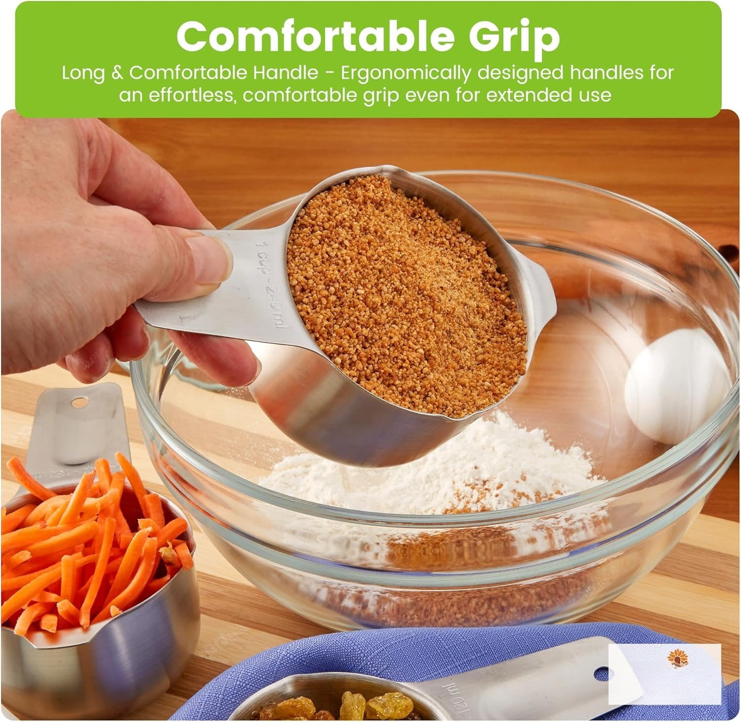 - Stop The Clutter And Mismatched Sets – The stackable measuring cups nest for compact storage and have a ring to help you keep them together. You can throw your odds and ends and sets once you have these. Built to last.