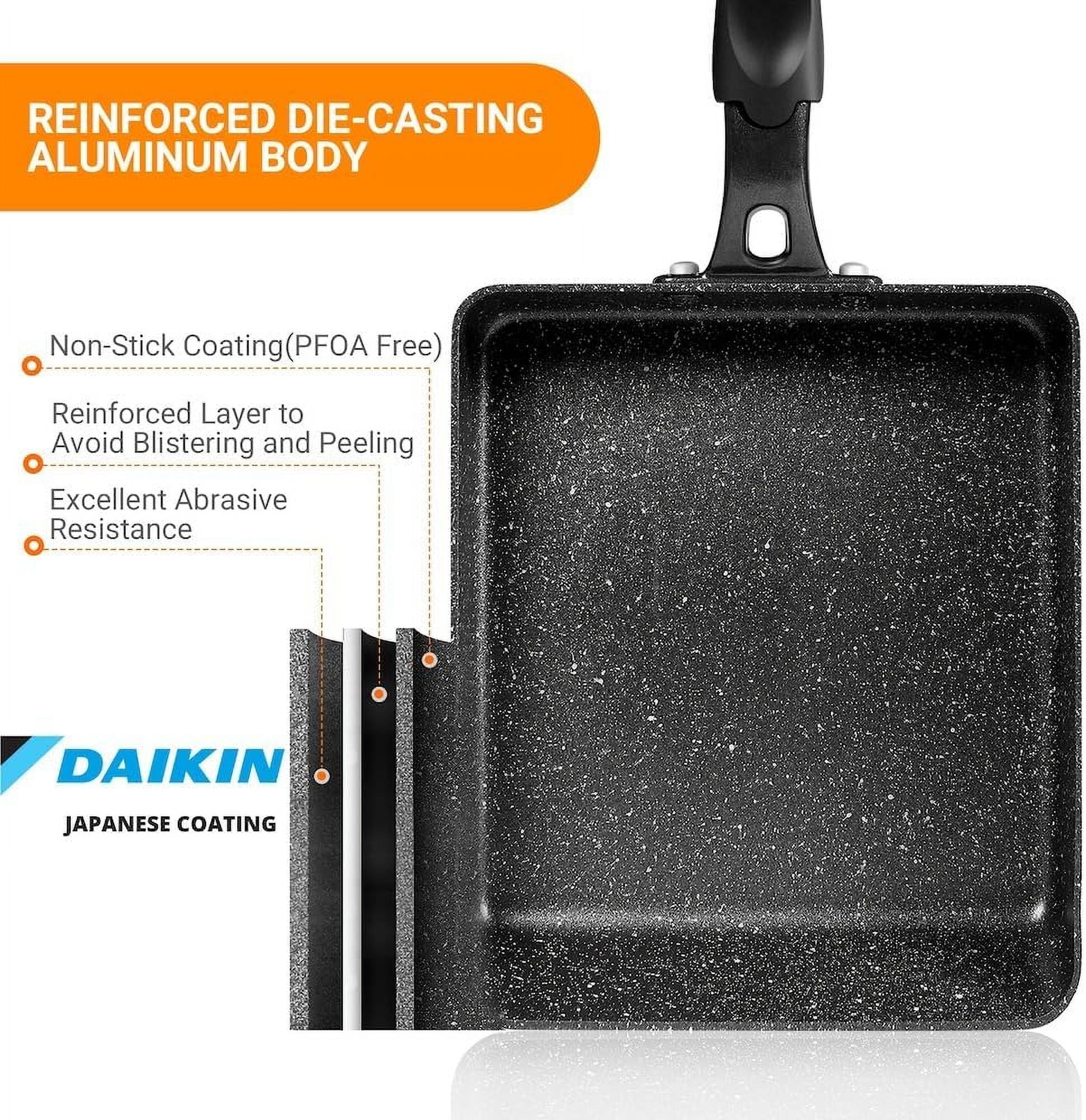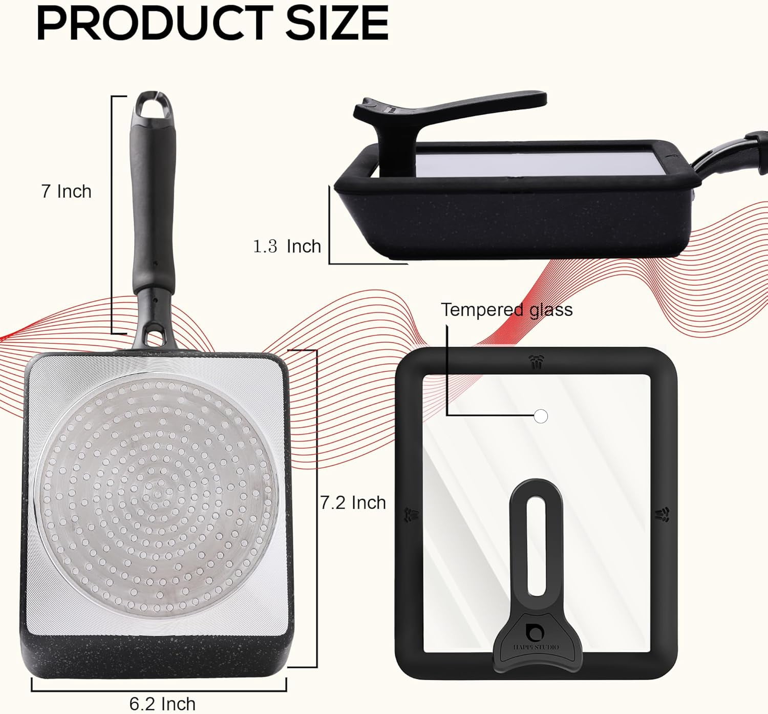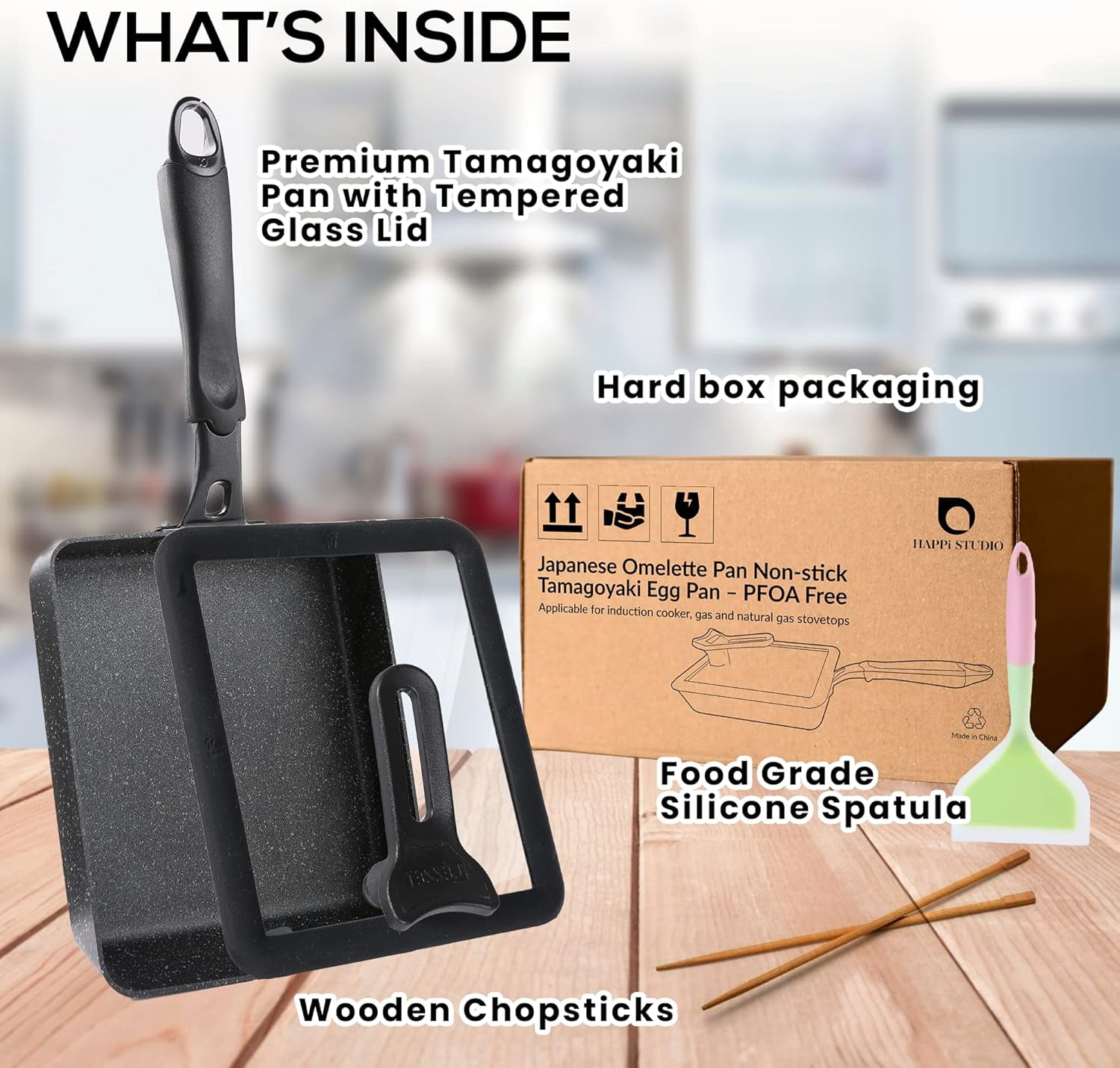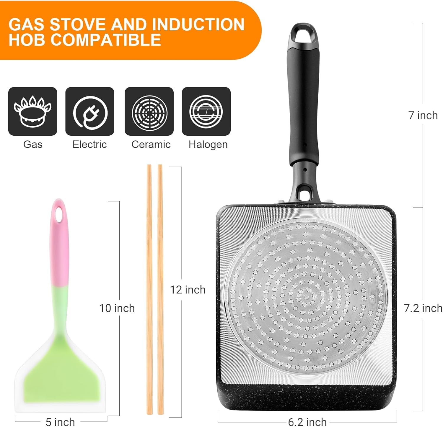 - Complete Set: Includes a matching lid, spatula, and chopsticks for effortless preparation of tamagoyaki, omelets, and other dishes, with the lid retaining heat for faster cooking.