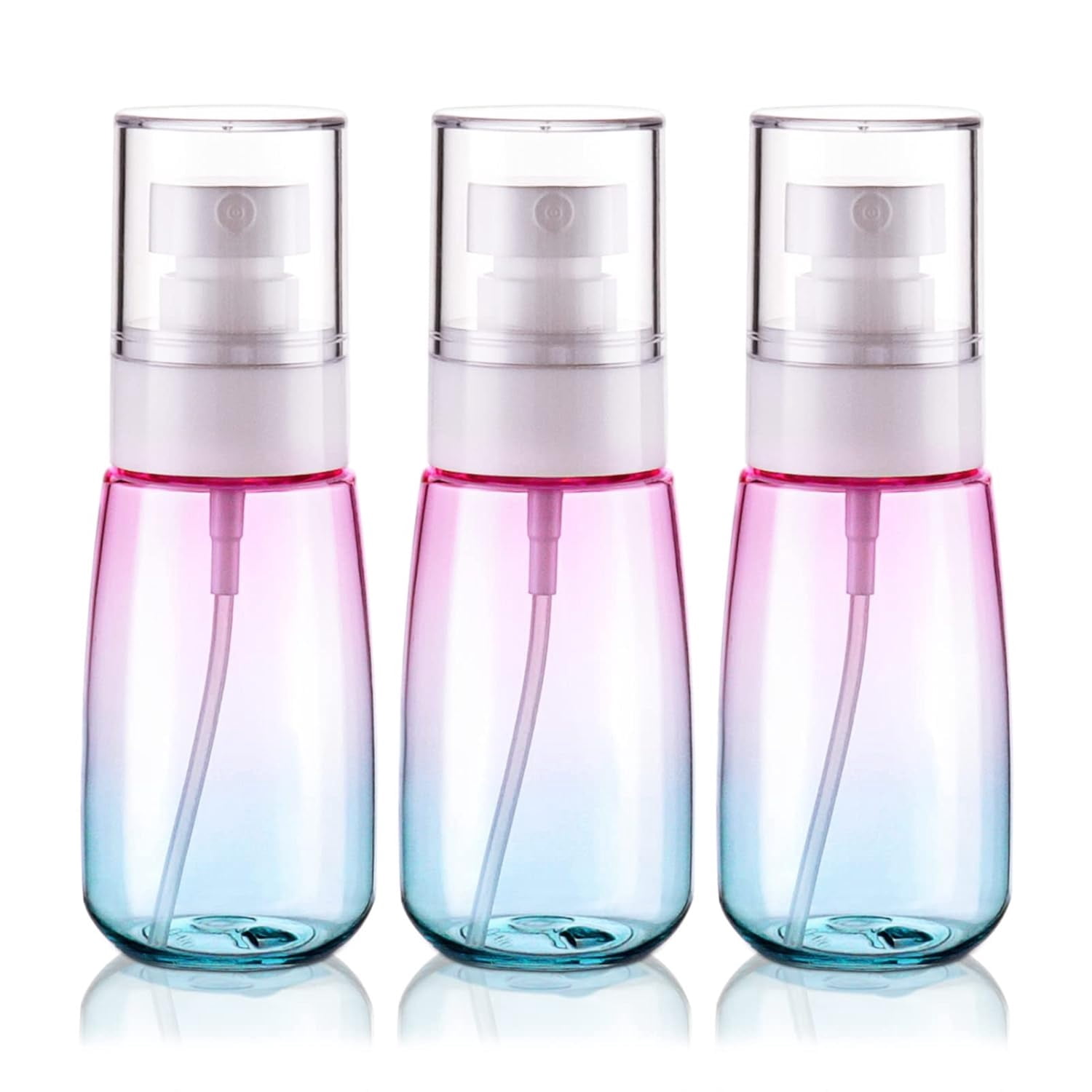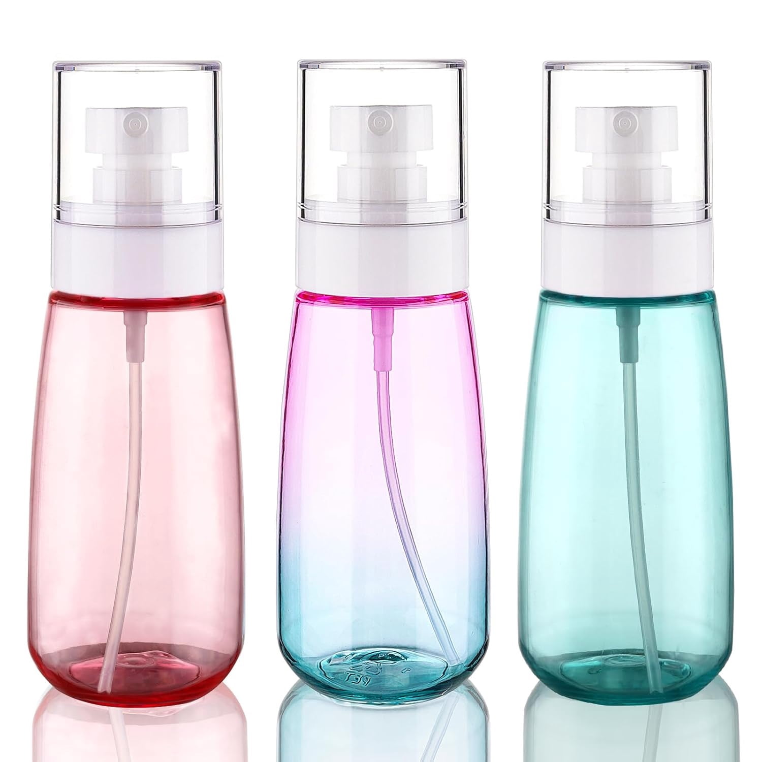 Travel Spray Bottle TSA Approved 3. 4oz 100ml 3 Pack Leak Proof Fine Mist Spray Bottles Empty Plastic Refillable Spray Bottle Perfume Essential Oils Toners Rose Water Cosmetics (3color)