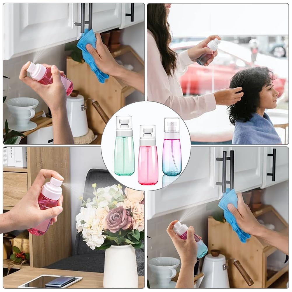 • .Fine Mist Sprayer: This is a spray bottle that sprays a fine mist, which can be easily produced by pressing down on it. Perfect for misting hair and skin.