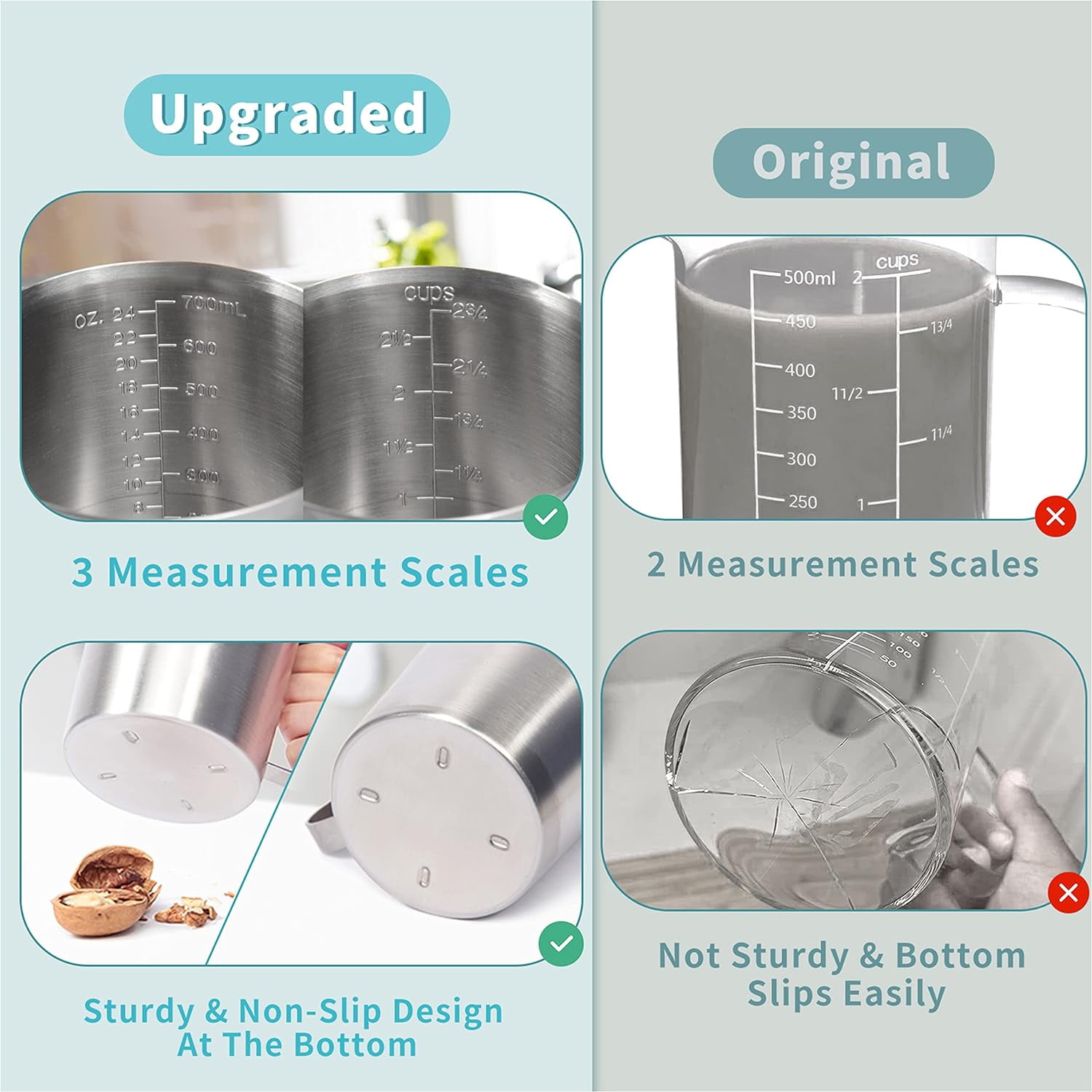 Upgraded Stainless Steel Measuring Cup with Triple Scales for Precise Cooking and Baking – 24oz (3 Cup) Set of 2