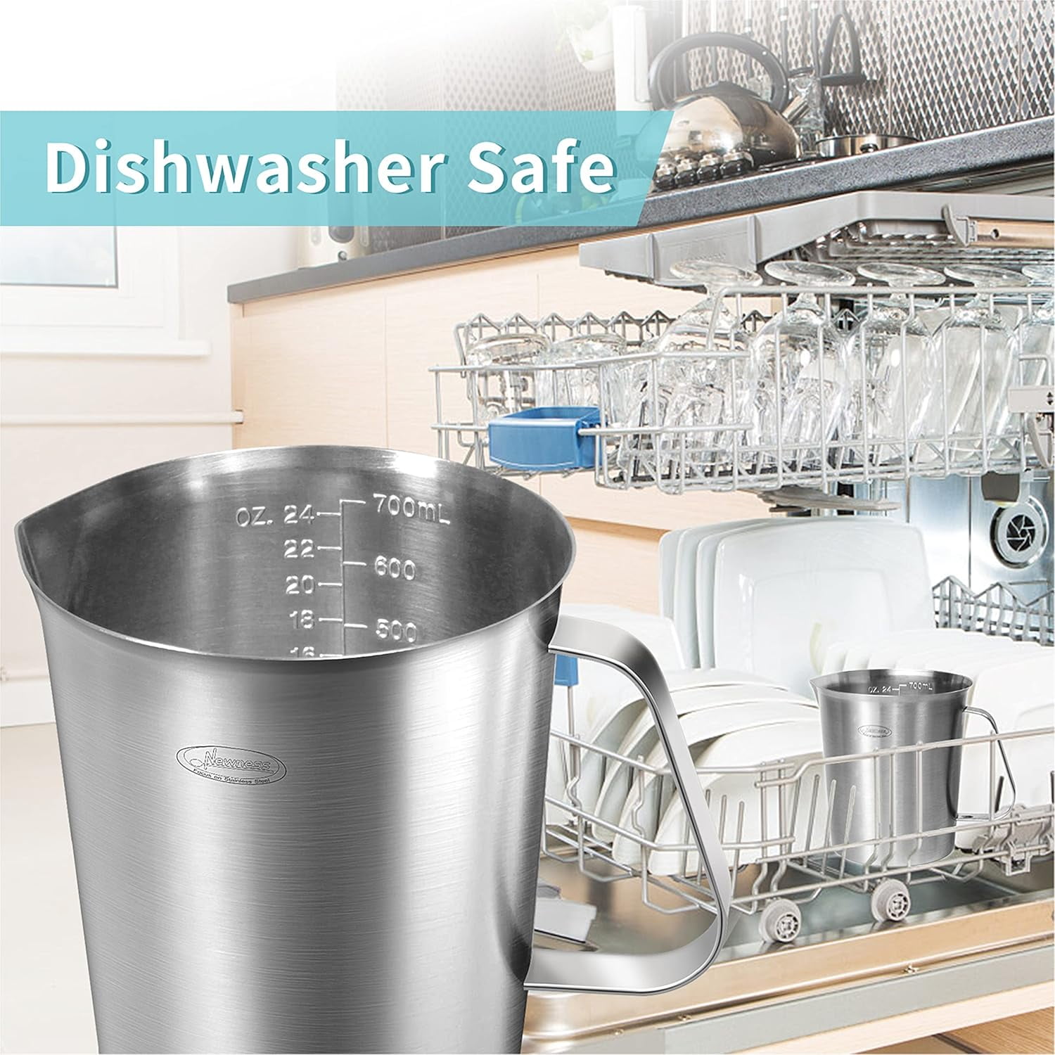 - Triple Measurement Scales: Equipped with easy-to-read internal markings for OZ (4-24 oz), ML (100-700 ml), and Cup (1/4 to 2.75 cups), allowing precise measurements for diverse recipes without switching tools.