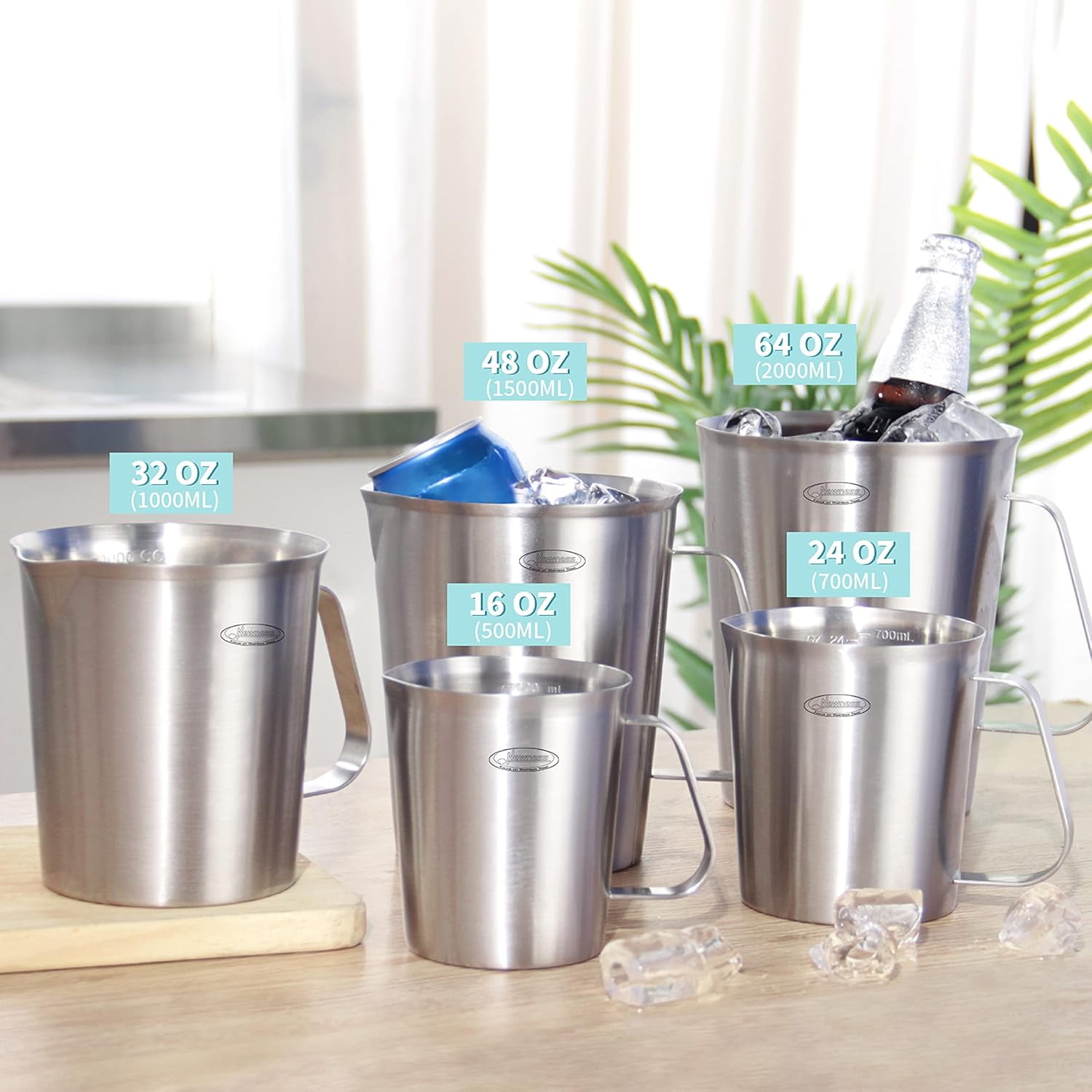 - Ergonomic Design & Safety: Features a spot-welded angled handle with a solid grip for secure holding and pouring, plus a wide mouth opening that makes cleaning simple and prevents spills during transfer.