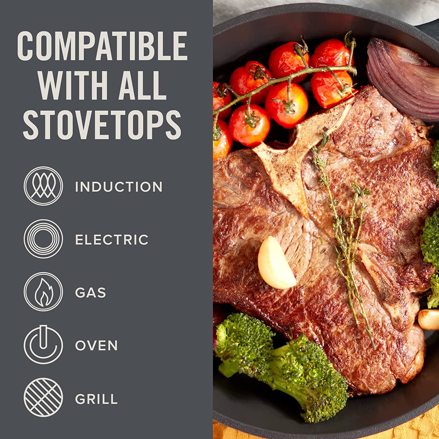 - Universal Compatibility: Works seamlessly on induction stovetops, gas, electric coils, and smooth surface ranges, offering flexibility for any kitchen setup while promoting joyful home cooking.